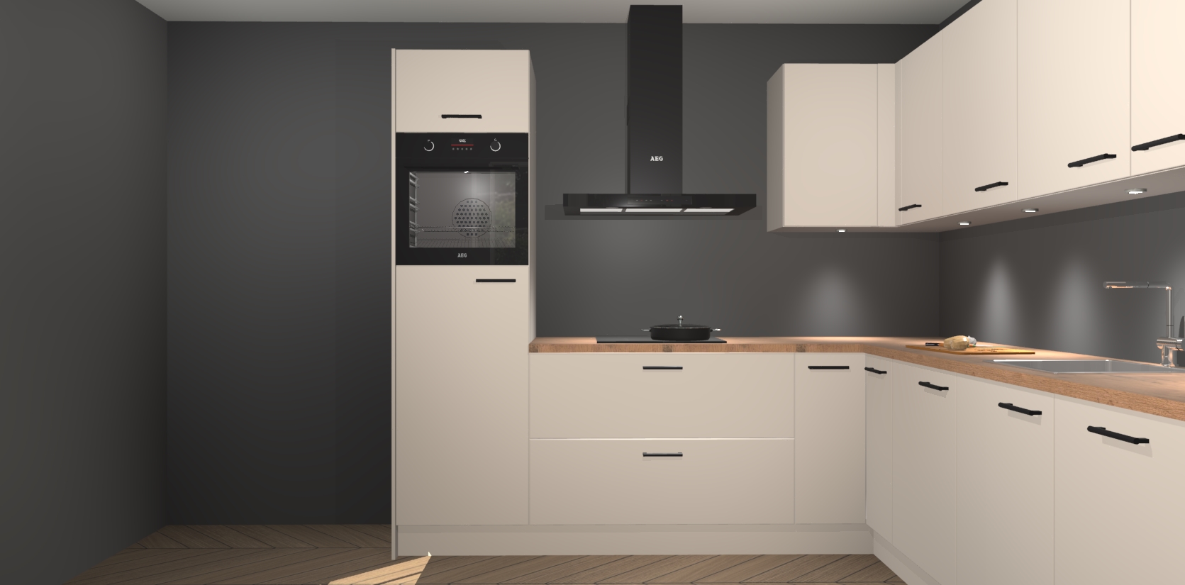 De Kasjmier keuken Debar is uitgerust met vijf inbouwapparaten die elke kooktaak handig en efficiënt maken. Een oven, inductiekookplaat, afzuigkap, vaatwasser en koelkast zijn standaard, maar kunnen na bestelling eenvoudig worden geupgrade naar AEG. Profiteer vervolgens van de softclose deuren voor snelle toegang en geruisloze toegang.