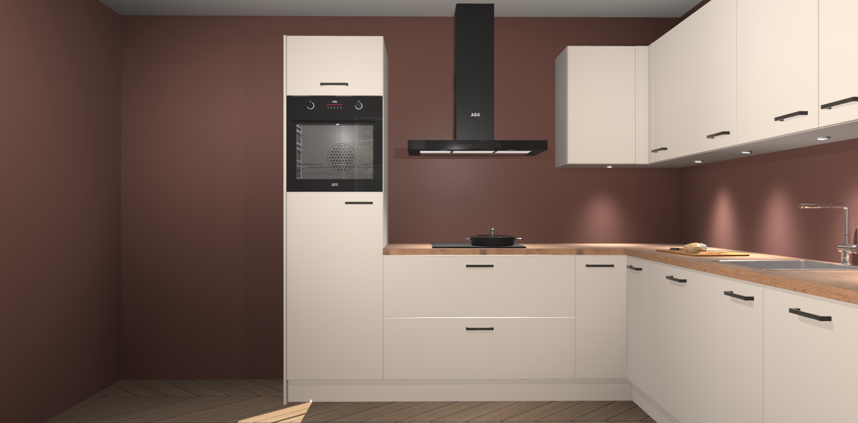 De Kasjmier keuken Debar is uitgerust met vijf inbouwapparaten die elke kooktaak handig en efficiënt maken. Een oven, inductiekookplaat, afzuigkap, vaatwasser en koelkast zijn standaard, maar kunnen na bestelling eenvoudig worden geupgrade naar AEG. Profiteer vervolgens van de softclose deuren voor snelle toegang en geruisloze toegang.