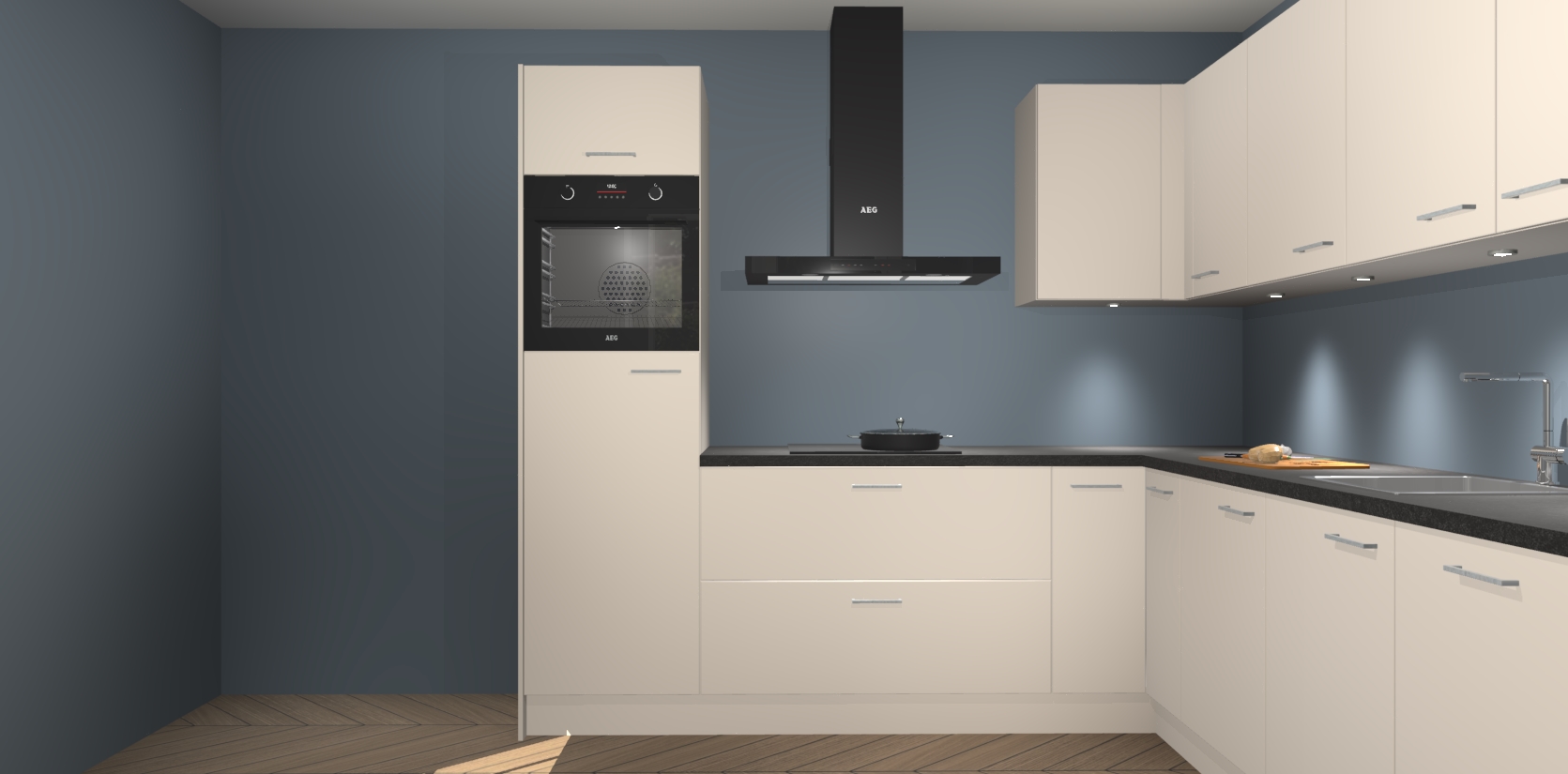 De Kasjmier keuken Debar is uitgerust met vijf inbouwapparaten die elke kooktaak handig en efficiënt maken. Een oven, inductiekookplaat, afzuigkap, vaatwasser en koelkast zijn standaard, maar kunnen na bestelling eenvoudig worden geupgrade naar AEG. Profiteer vervolgens van de softclose deuren voor snelle toegang en geruisloze toegang.