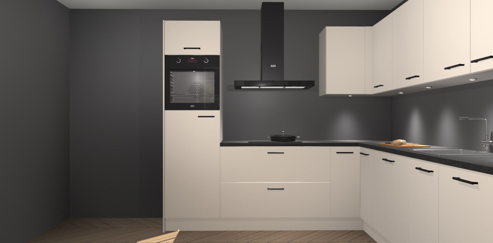 De Kasjmier keuken Debar is uitgerust met vijf inbouwapparaten die elke kooktaak handig en efficiënt maken. Een oven, inductiekookplaat, afzuigkap, vaatwasser en koelkast zijn standaard, maar kunnen na bestelling eenvoudig worden geupgrade naar AEG. Profiteer vervolgens van de softclose deuren voor snelle toegang en geruisloze toegang.