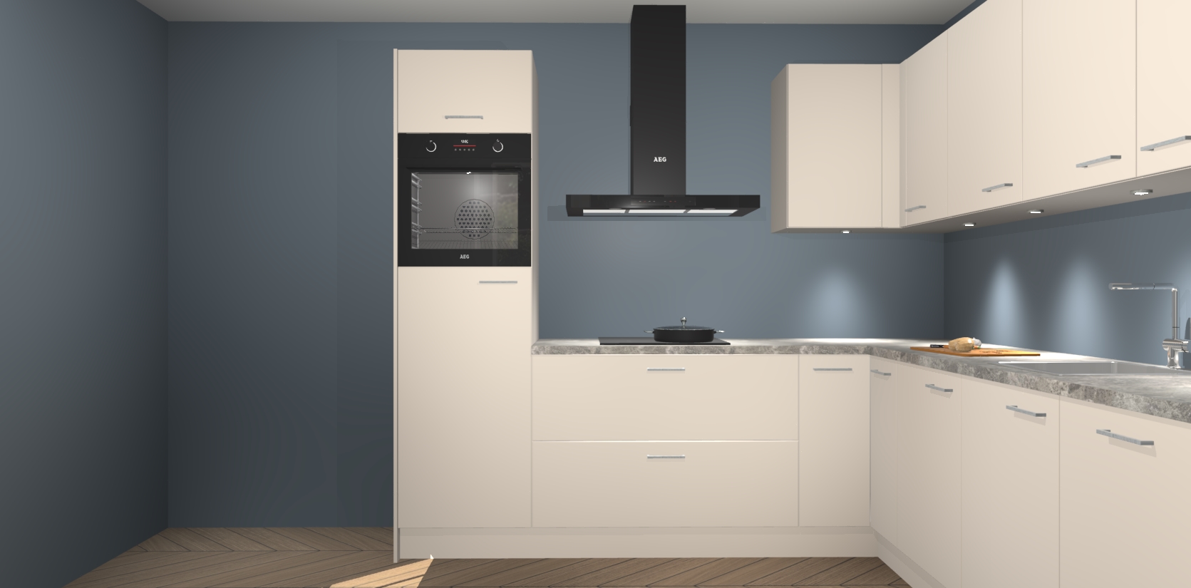 De Kasjmier keuken Debar is uitgerust met vijf inbouwapparaten die elke kooktaak handig en efficiënt maken. Een oven, inductiekookplaat, afzuigkap, vaatwasser en koelkast zijn standaard, maar kunnen na bestelling eenvoudig worden geupgrade naar AEG. Profiteer vervolgens van de softclose deuren voor snelle toegang en geruisloze toegang.