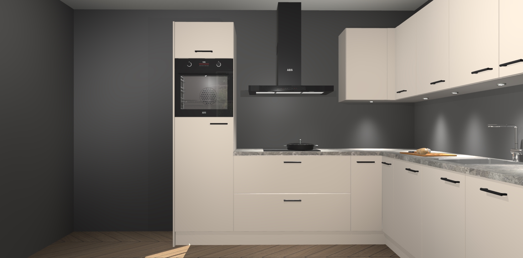 De Kasjmier keuken Debar is uitgerust met vijf inbouwapparaten die elke kooktaak handig en efficiënt maken. Een oven, inductiekookplaat, afzuigkap, vaatwasser en koelkast zijn standaard, maar kunnen na bestelling eenvoudig worden geupgrade naar AEG. Profiteer vervolgens van de softclose deuren voor snelle toegang en geruisloze toegang.
