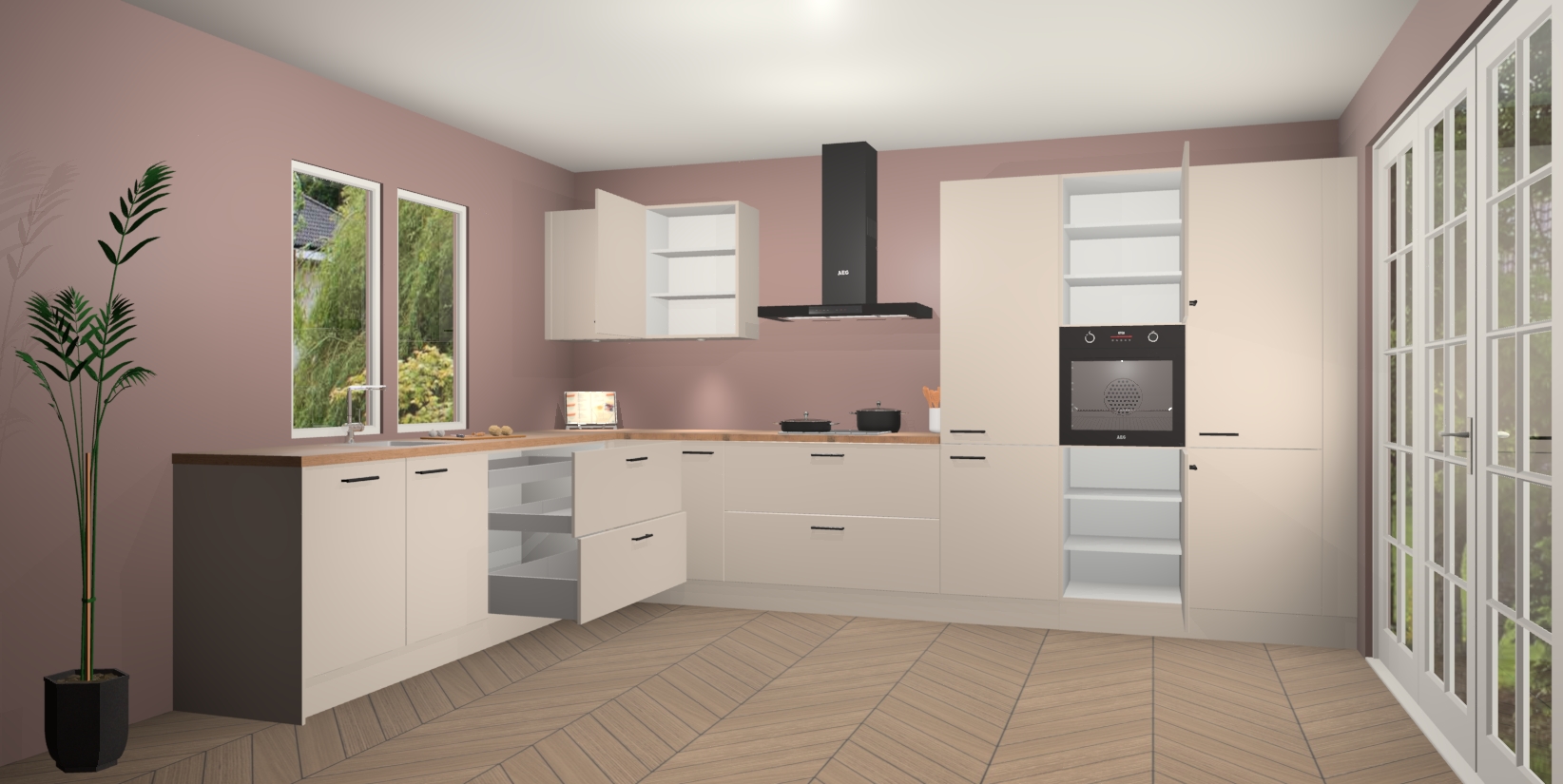 Inclusief plinten, stelpoten en werkblad