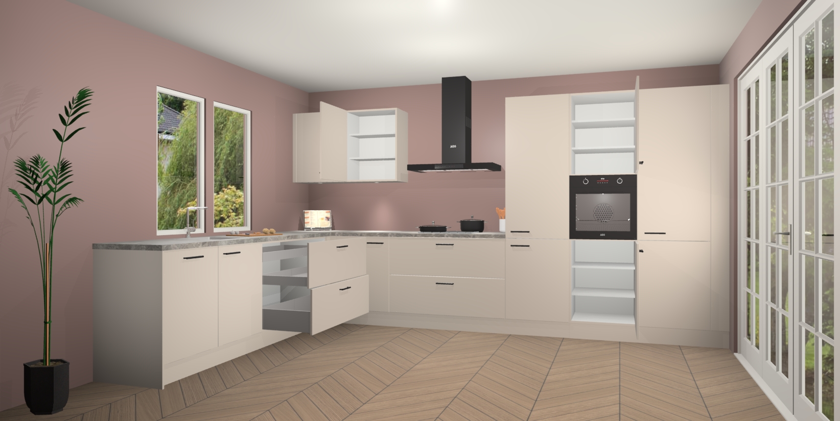 Inclusief plinten, stelpoten en werkblad