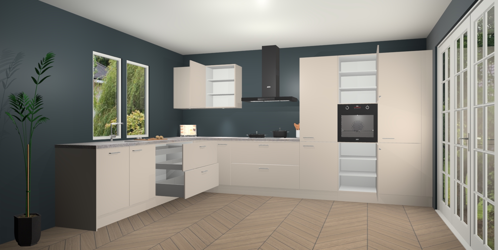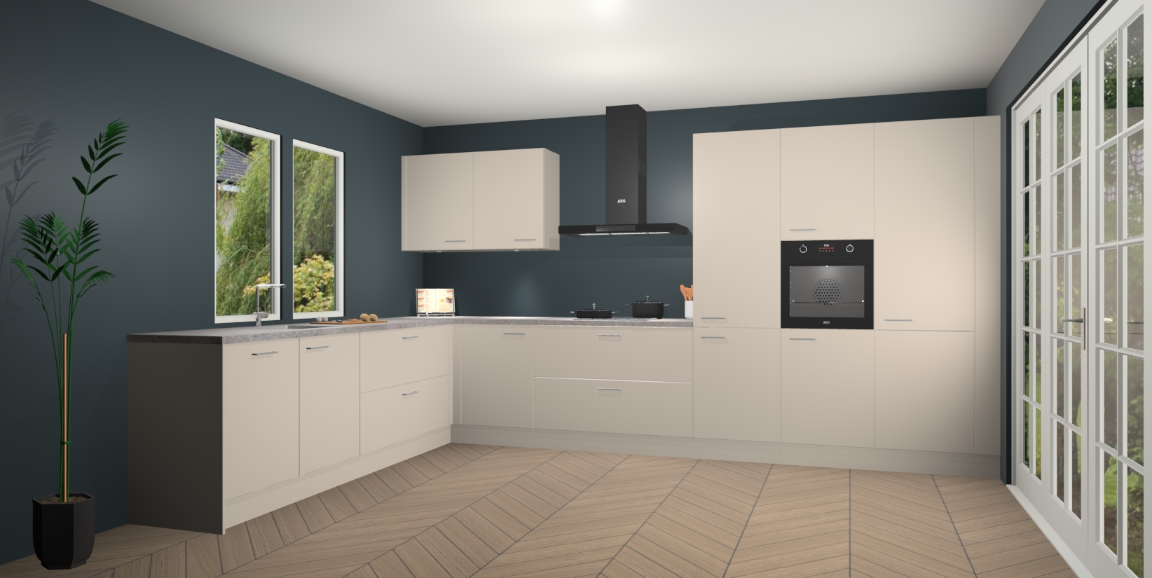 Inclusief plinten, stelpoten en werkblad