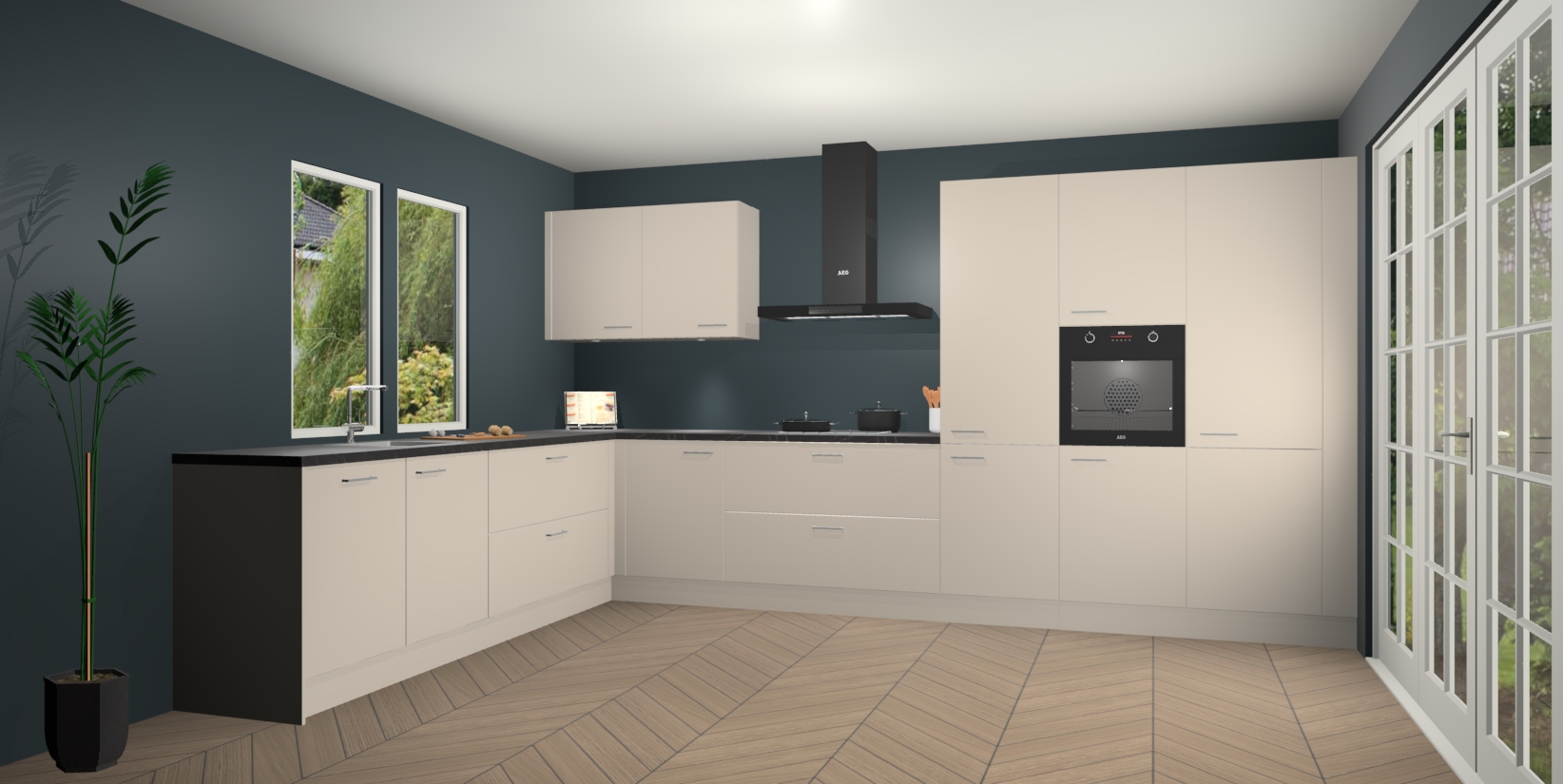 Inclusief plinten, stelpoten en werkblad