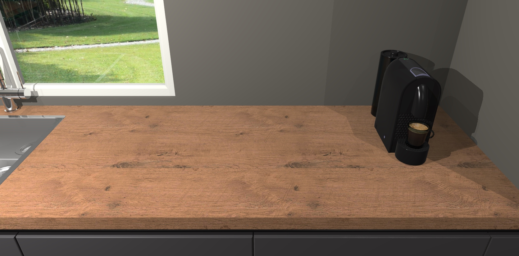 • Bij een hoekwerkblad zijn de hoeken in gevreesd en op maat gemaakt