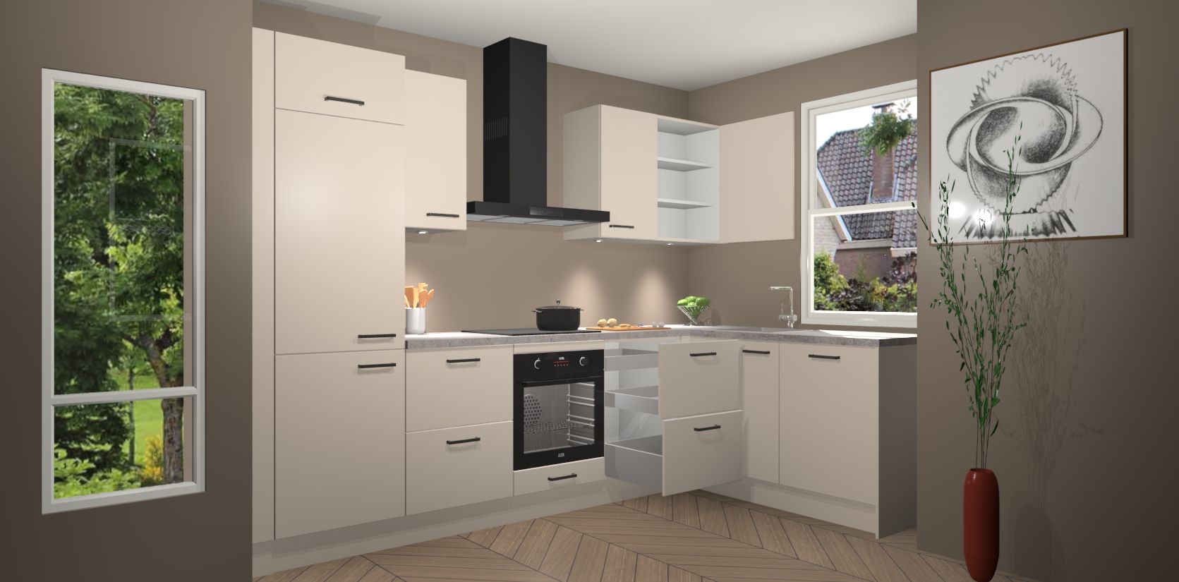 In deze box zijn alle kleuren verzameld van de deuren en werkbladen. Vraag de gratis kleurenbox aan en kijk thuis rustig verder!