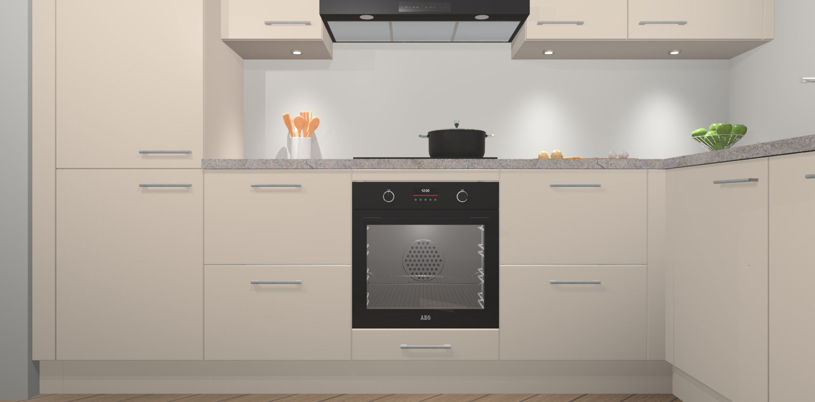 De kasjmier keuken Geneve is uitgerust met 5 inbouwapparaten - een oven, inductiekookplaat, afzuigkap, vaatwasser en koelkast - voor al uw kook- en bewaarbehoeftes. U kunt deze apparaten desgewenst eenvoudig upgraden naar AEG of de oven omruilen voor een combimagnetron na het plaatsen van uw bestelling. En met de soft close deuren, voldoende opbergruimte en kasten die voorgemonteerd worden geleverd, bent u in een mum van tijd klaar om heerlijke maaltijden te bereiden!