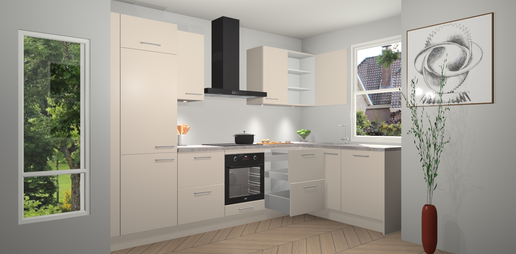 Inclusief plinten, stelpoten en werkblad