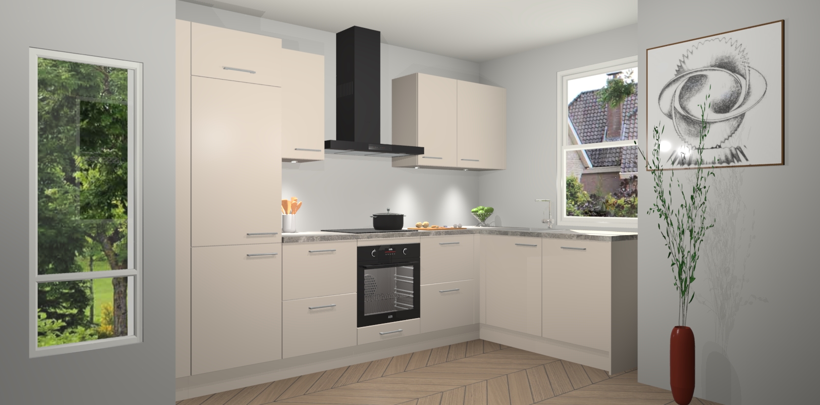 Bent u op zoek naar een moderne en tijdloze keuken die schoonheid in uw huis brengt? Zoek dan niet verder dan de kasjmier keuken Geneve - de perfecte keuken voor al uw wensen. Deze hoekkeuken biedt de hoogste Duitse kwaliteit voor een vaste lage prijs en is zeker een blikvanger in uw huis!