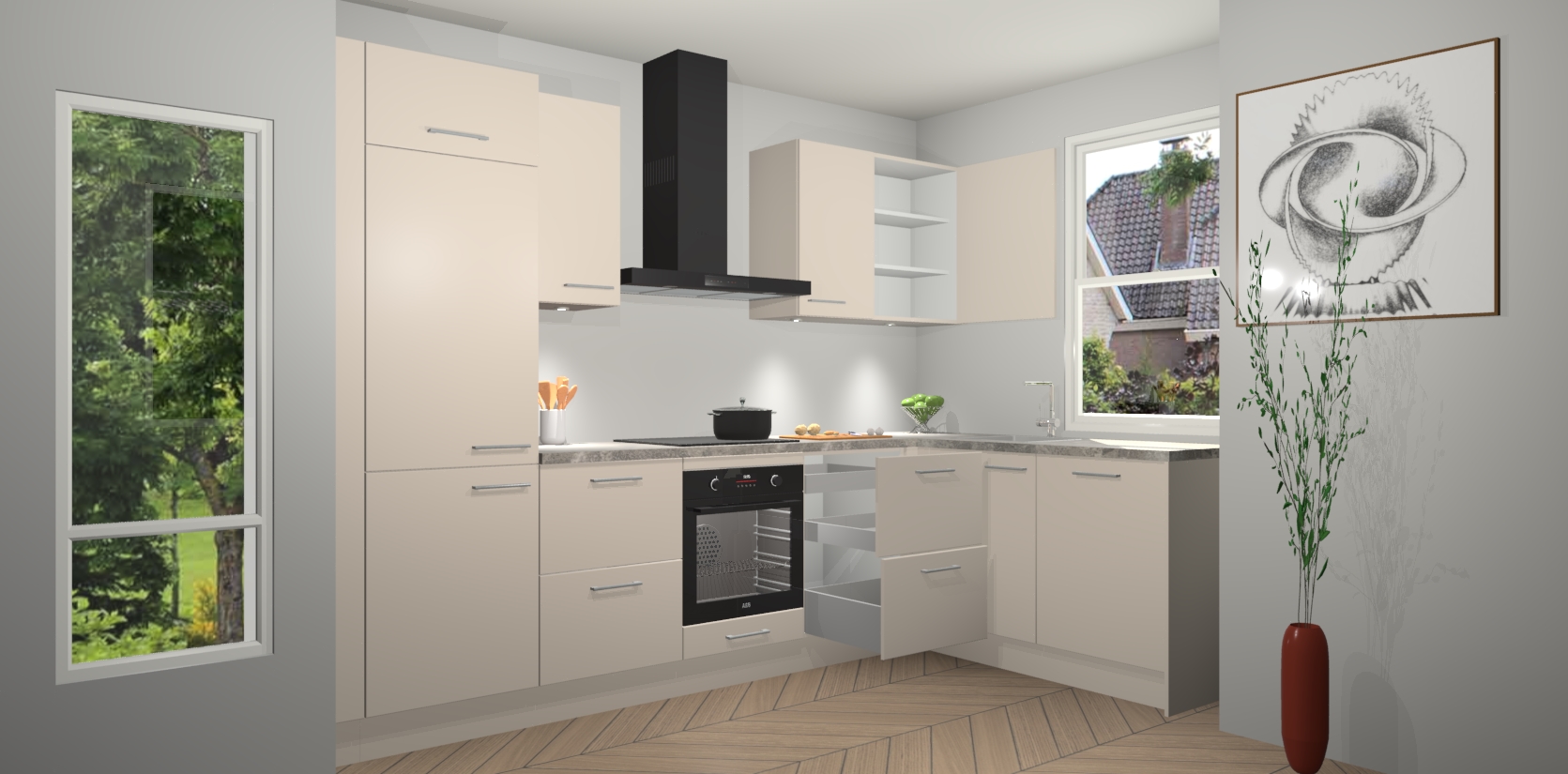 In deze box zijn alle kleuren verzameld van de deuren en werkbladen. Vraag de gratis kleurenbox aan en kijk thuis rustig verder!