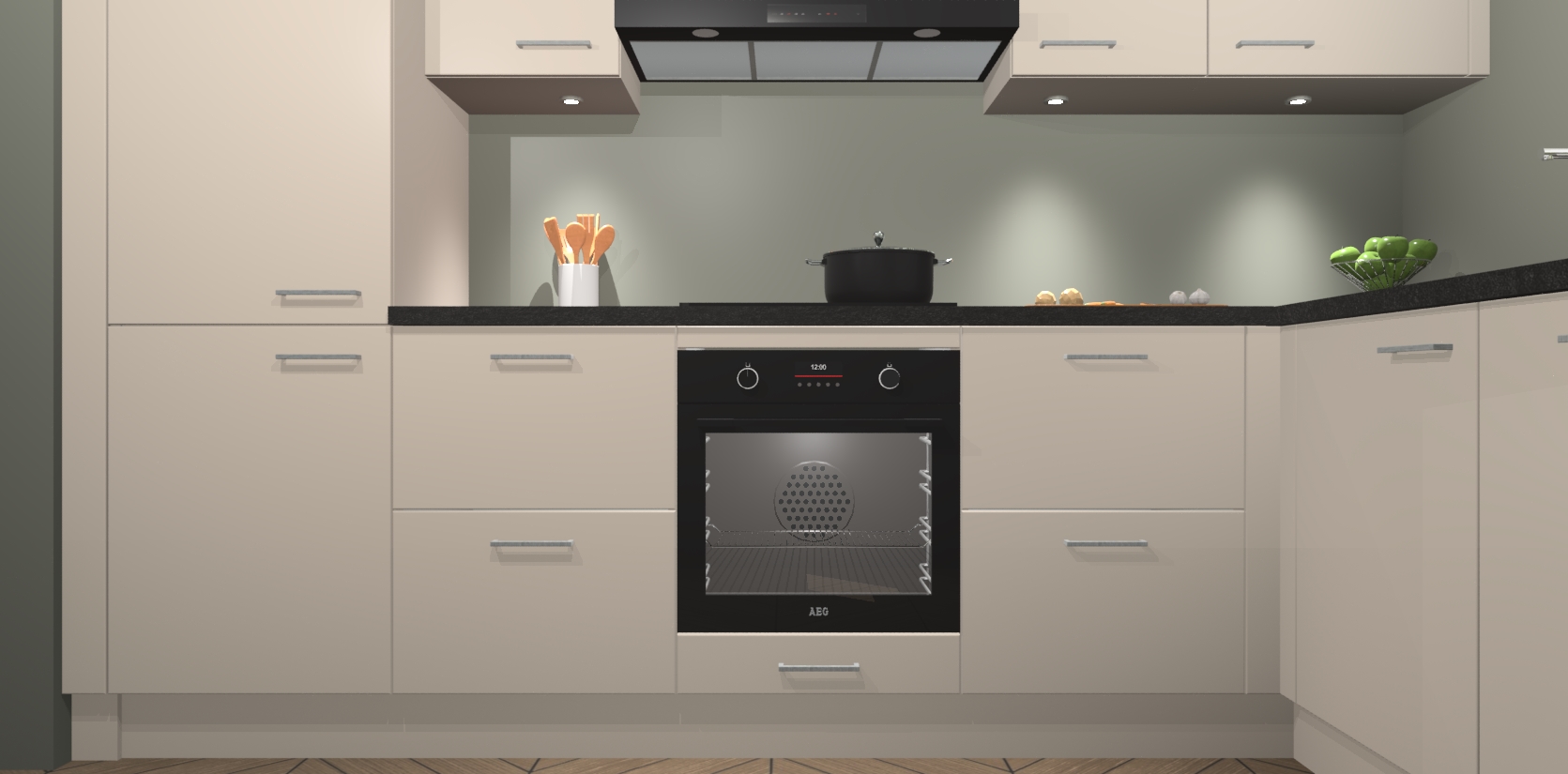 De kasjmier keuken Geneve is uitgerust met 5 inbouwapparaten - een oven, inductiekookplaat, afzuigkap, vaatwasser en koelkast - voor al uw kook- en bewaarbehoeftes. U kunt deze apparaten desgewenst eenvoudig upgraden naar AEG of de oven omruilen voor een combimagnetron na het plaatsen van uw bestelling. En met de soft close deuren, voldoende opbergruimte en kasten die voorgemonteerd worden geleverd, bent u in een mum van tijd klaar om heerlijke maaltijden te bereiden!