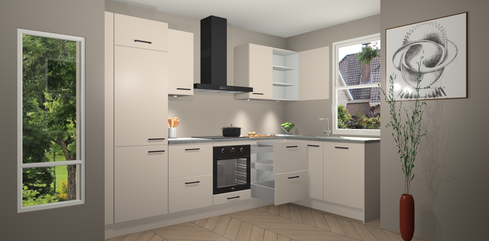 Inclusief plinten, stelpoten en werkblad