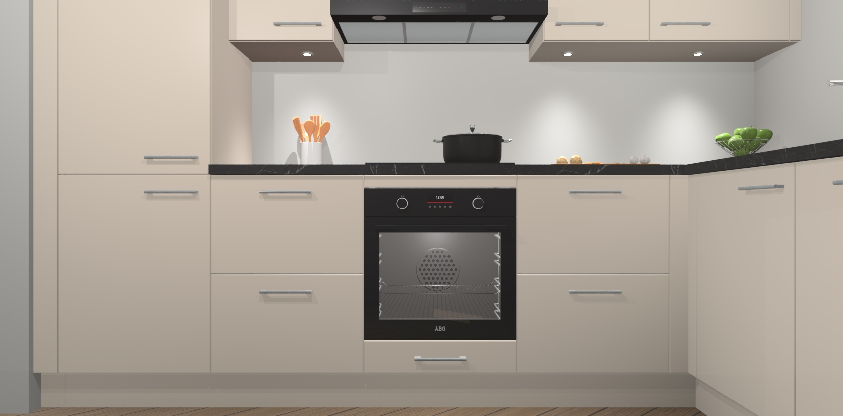 De kasjmier keuken Geneve is uitgerust met 5 inbouwapparaten - een oven, inductiekookplaat, afzuigkap, vaatwasser en koelkast - voor al uw kook- en bewaarbehoeftes. U kunt deze apparaten desgewenst eenvoudig upgraden naar AEG of de oven omruilen voor een combimagnetron na het plaatsen van uw bestelling. En met de soft close deuren, voldoende opbergruimte en kasten die voorgemonteerd worden geleverd, bent u in een mum van tijd klaar om heerlijke maaltijden te bereiden!