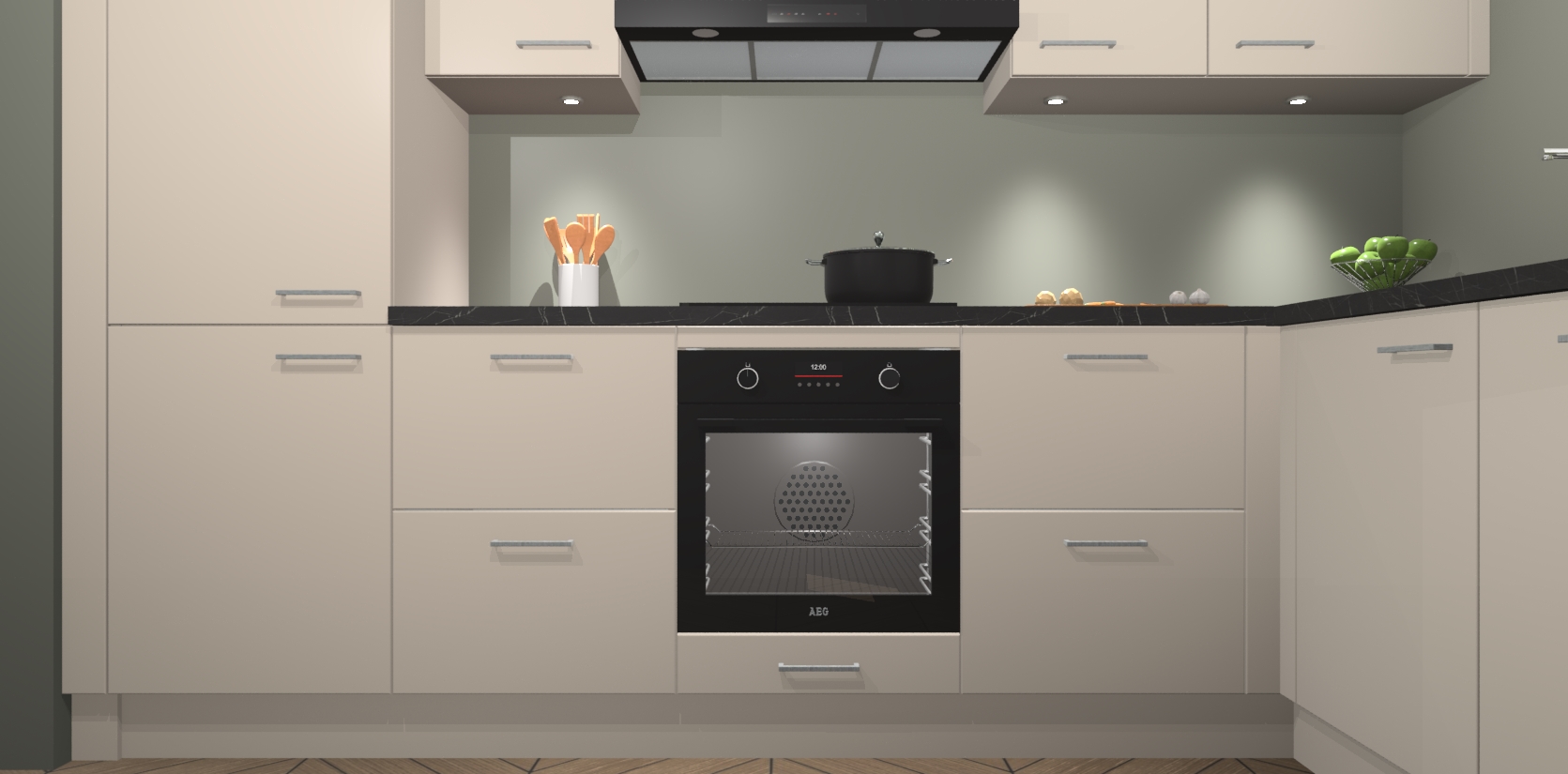 De kasjmier keuken Geneve is uitgerust met 5 inbouwapparaten - een oven, inductiekookplaat, afzuigkap, vaatwasser en koelkast - voor al uw kook- en bewaarbehoeftes. U kunt deze apparaten desgewenst eenvoudig upgraden naar AEG of de oven omruilen voor een combimagnetron na het plaatsen van uw bestelling. En met de soft close deuren, voldoende opbergruimte en kasten die voorgemonteerd worden geleverd, bent u in een mum van tijd klaar om heerlijke maaltijden te bereiden!