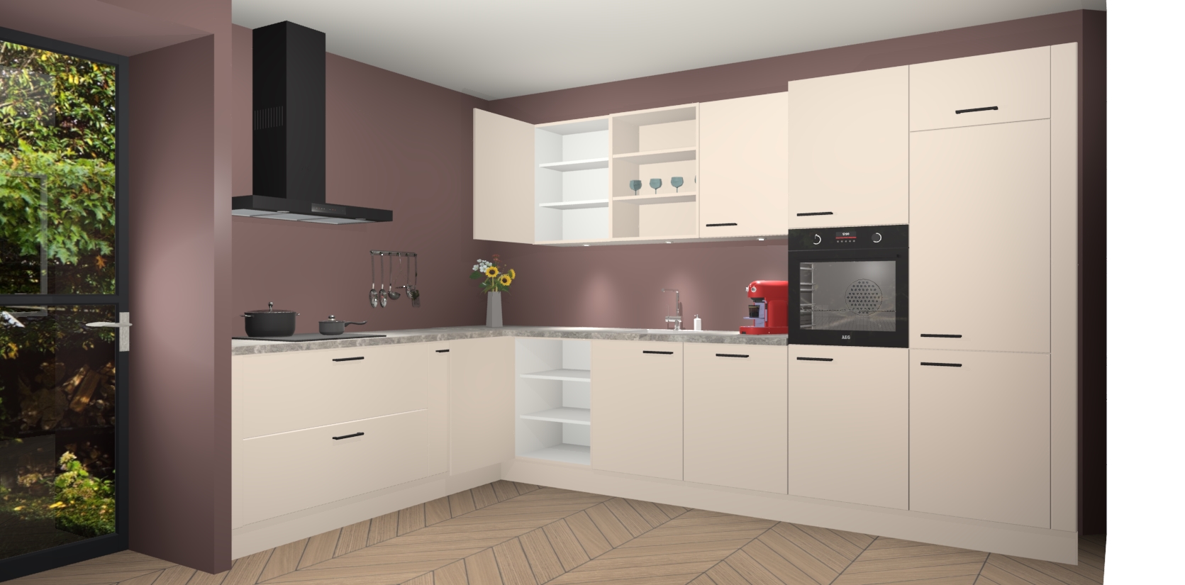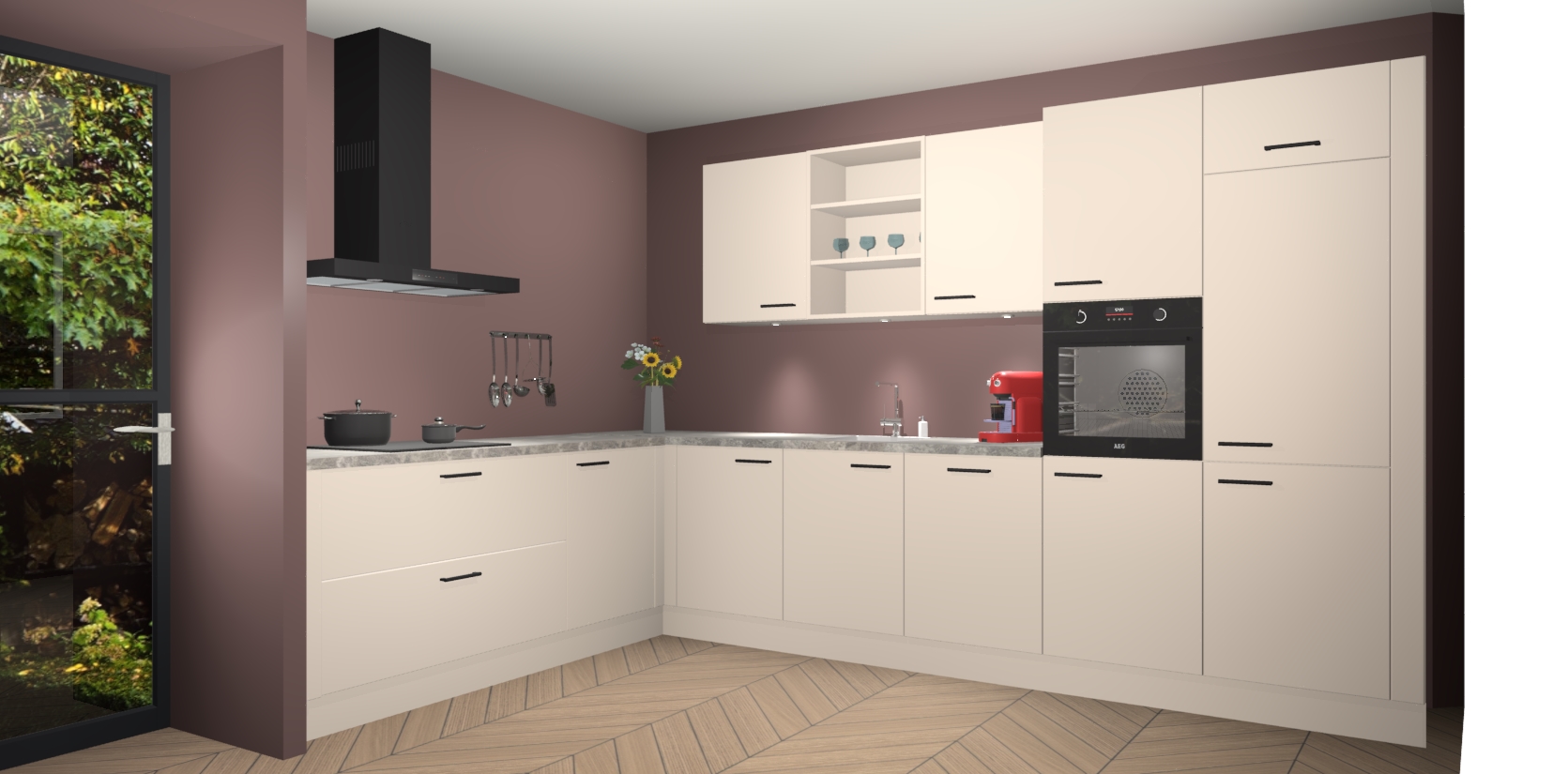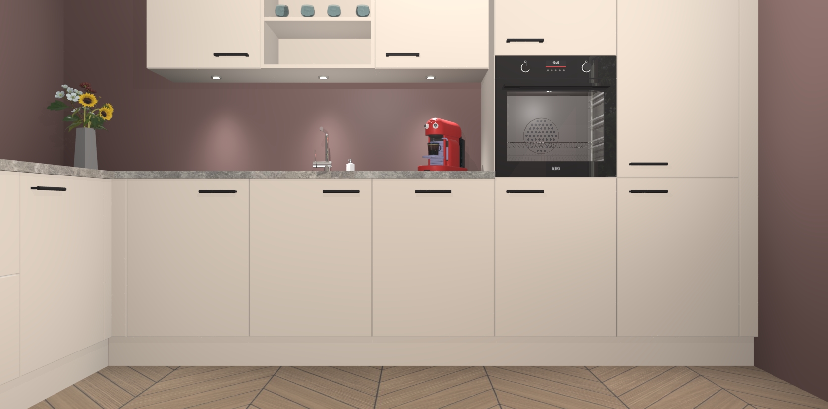 De Kasjmier keuken Gotenburg is zo ontworpen dat u alle mogelijke vormen van opslagruimte kunt genieten. Bovendien heeft u meteen toegang tot vijf ingebouwde apparaten: een oven, inductiekookplaat, afzuigkap, vaatwasser en koelkast. Gewoon upgraden naar AEG na bestelling? Dit kan heel gemakkelijk worden geregeld. De deuren sluiten zacht dankzij zachtsluitende scharnieren en ze houden warmte vast terwijl ze uitzonderlijk stil blijven wanneer ze worden geopend of gesloten.