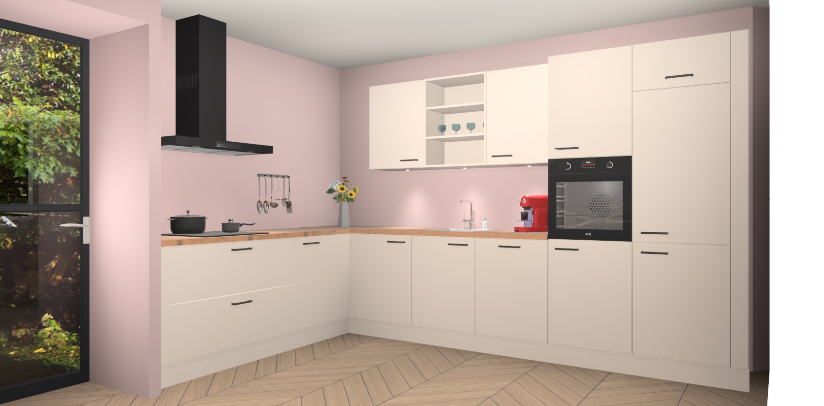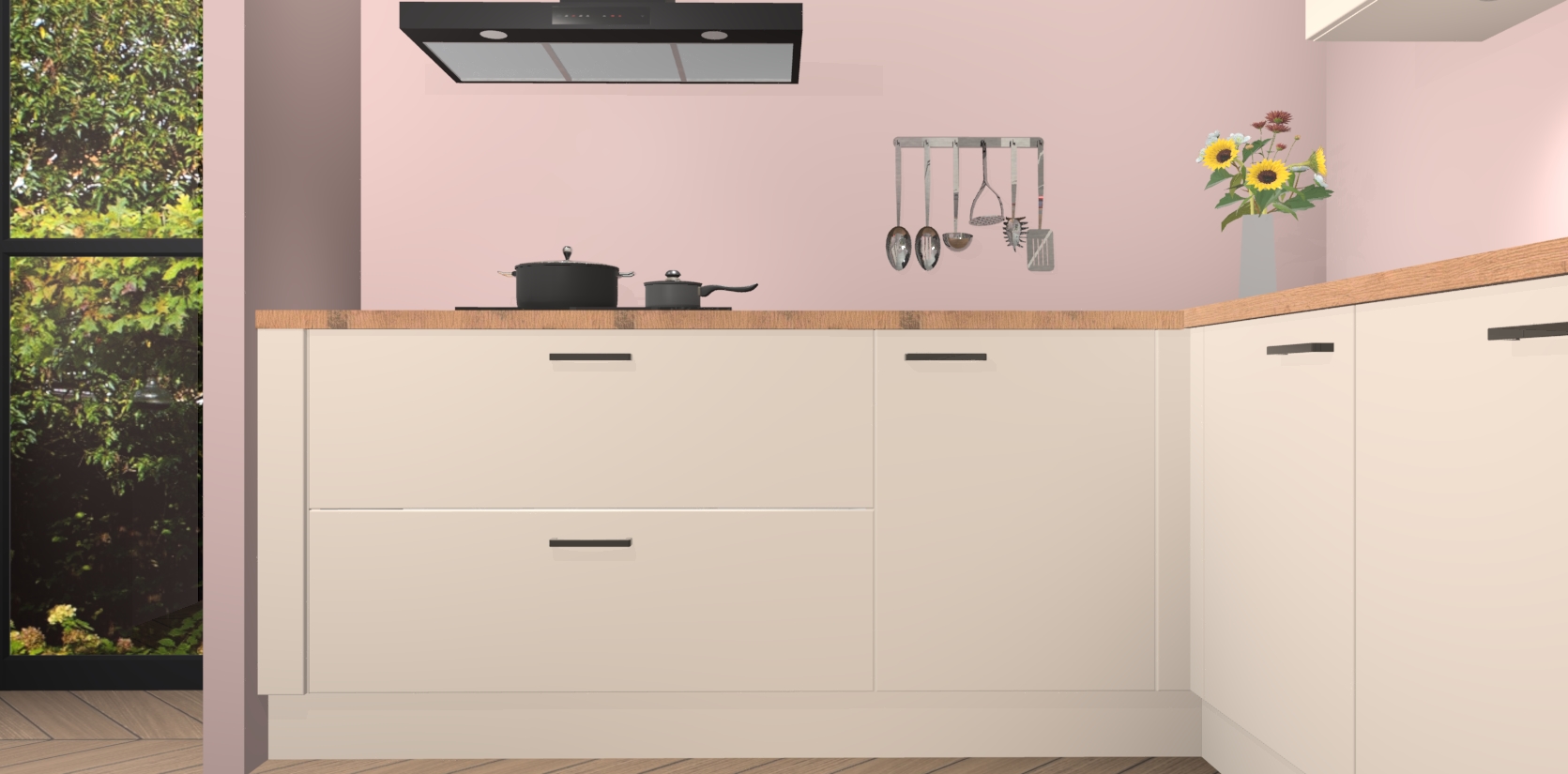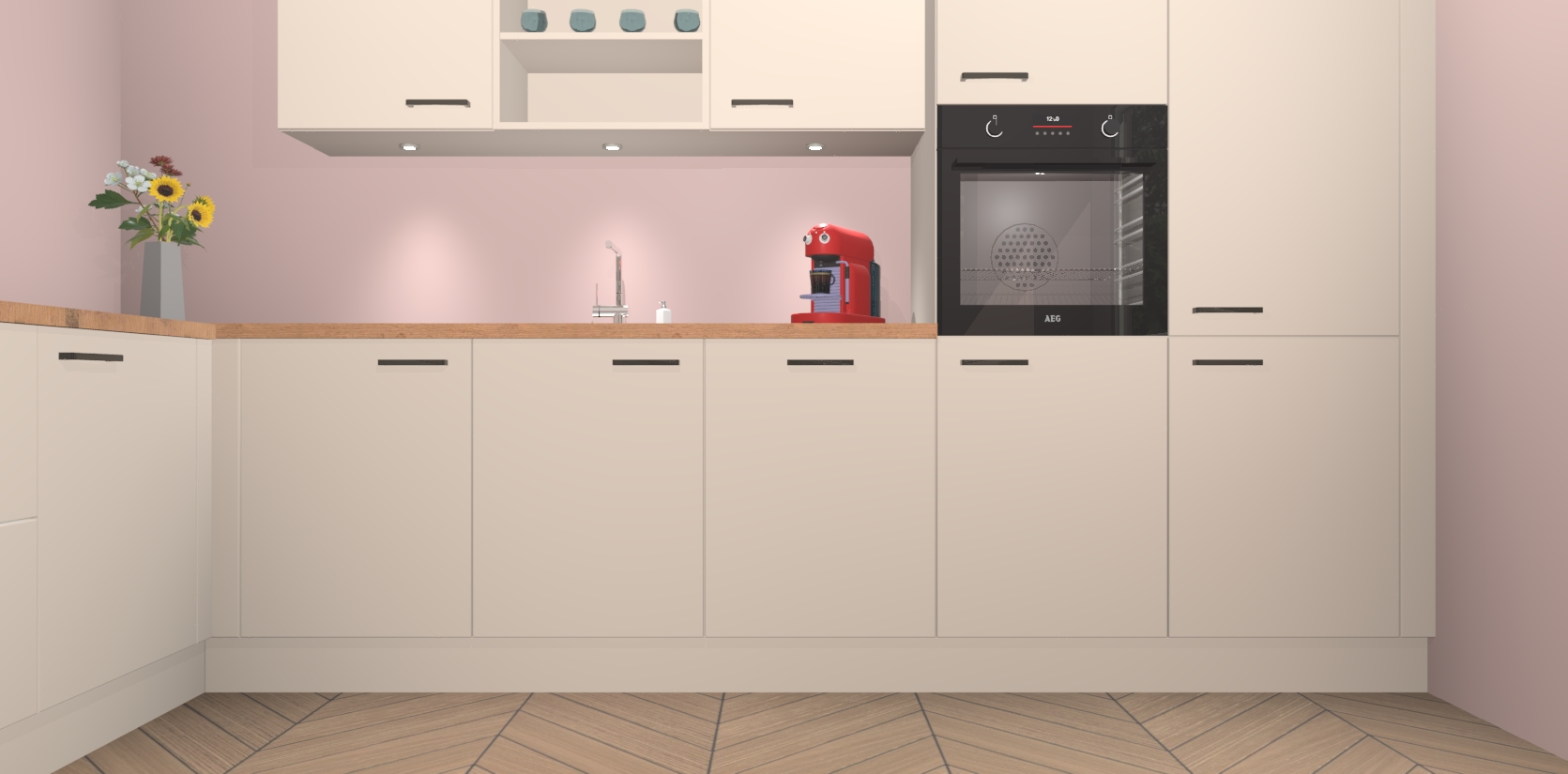 Inclusief plinten, stelpoten en werkblad