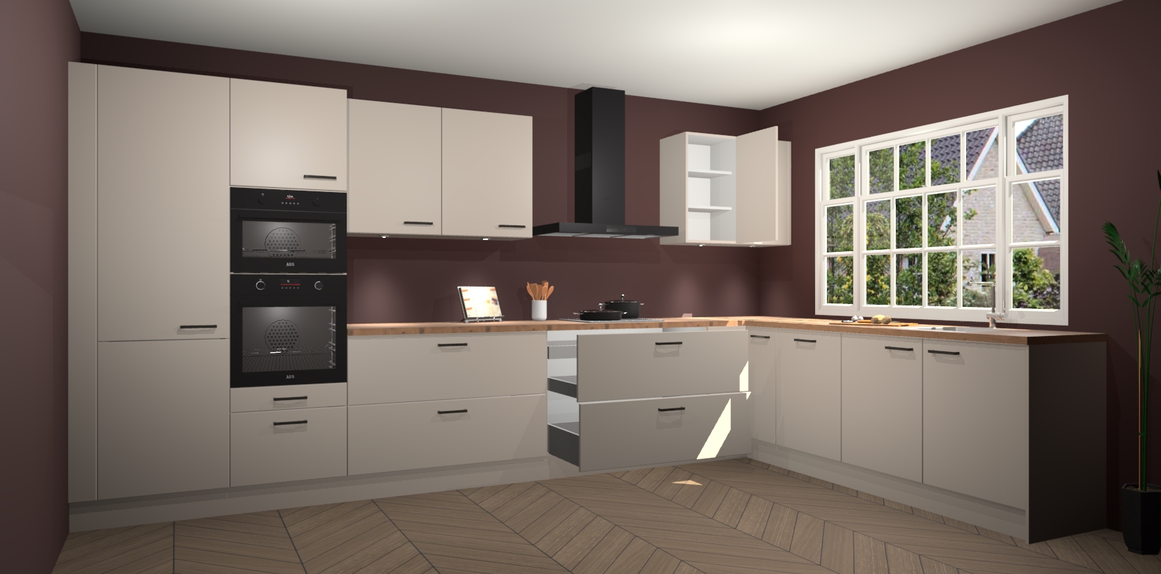 Kom dichtbij de perfecte keuken van uw dromen met de kasjmier keuken Graz. Met een prachtige houtlook en eigentijds ontwerp, straalt deze keuken warmte en sfeer uit. Of u nu liefhebber bent van traditionele of moderne stijlen, er is genoeg ruimte om aan al uw behoeften te voldoen.