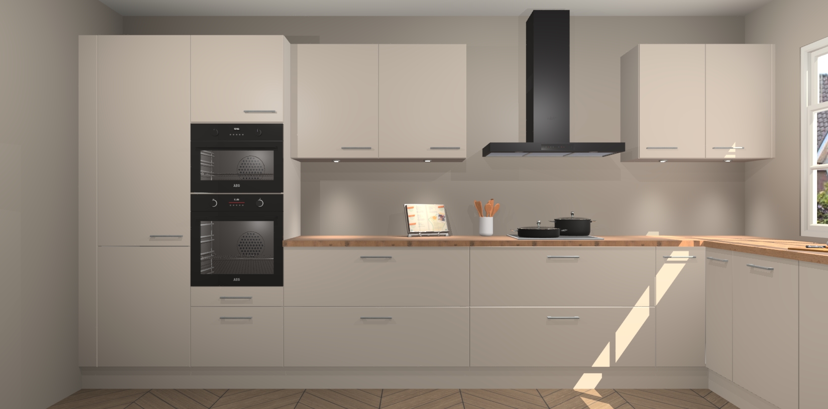 Heeft u nog apparatuur nodig? Geen probleem: de kasjmier keuken Graz bevat vijf ingebouwde apparaten - een oven, inductiekookplaat, afzuigkap, vaatwasser en koelkast - die gemakkelijk kunnen worden bijgewerkt naar AEG na bestelling. En als dat nog niet genoeg is; onze kasten worden pre-geassembleerd geleverd en zijn verkrijgbaar tegen een vastgeroeste lage prijs! U hoeft nooit meer te zoeken naar goede kwaliteit en service want onze producten hebben echt Duitse kwaliteit.