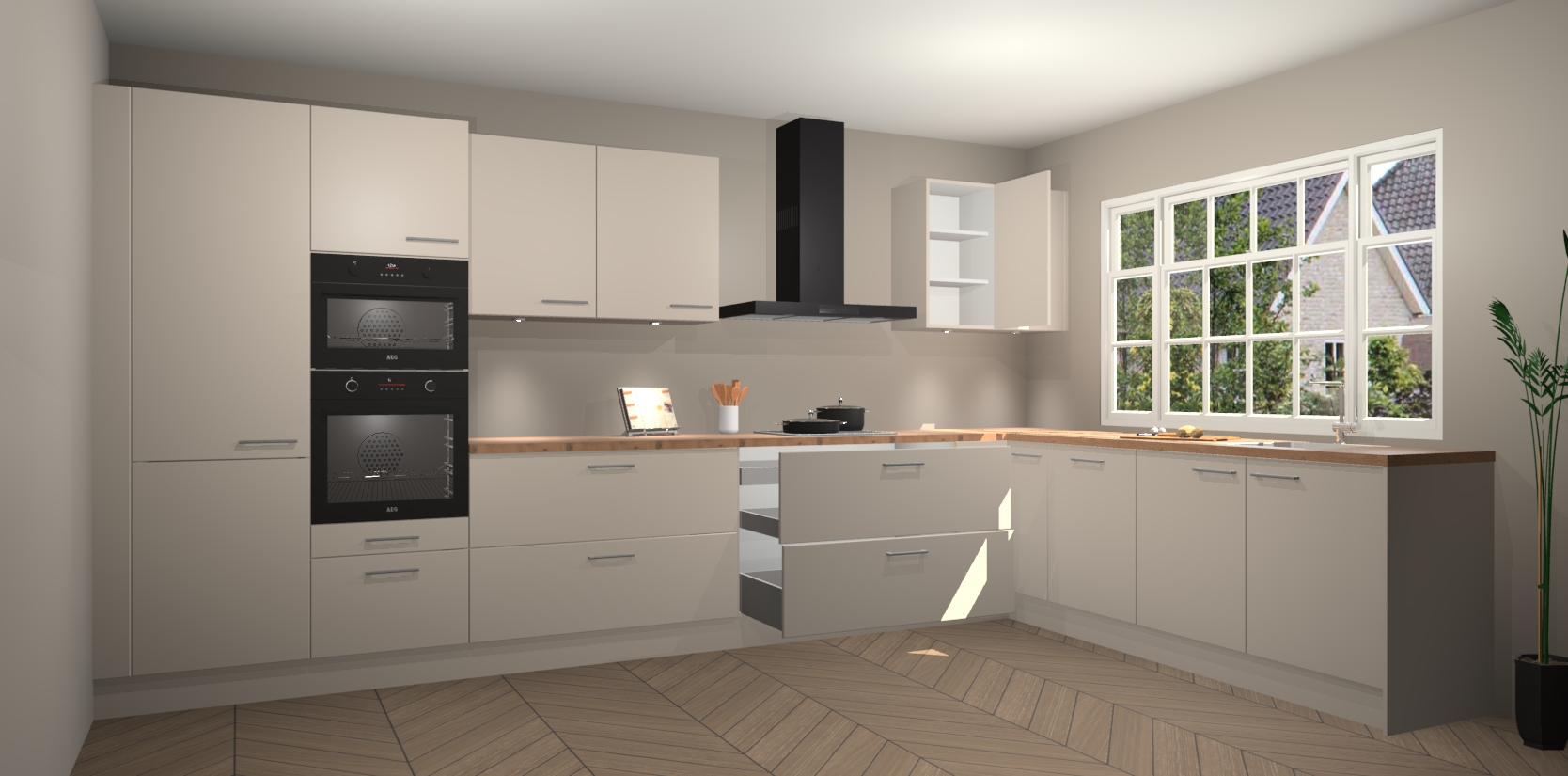 Inclusief plinten, stelpoten en werkblad