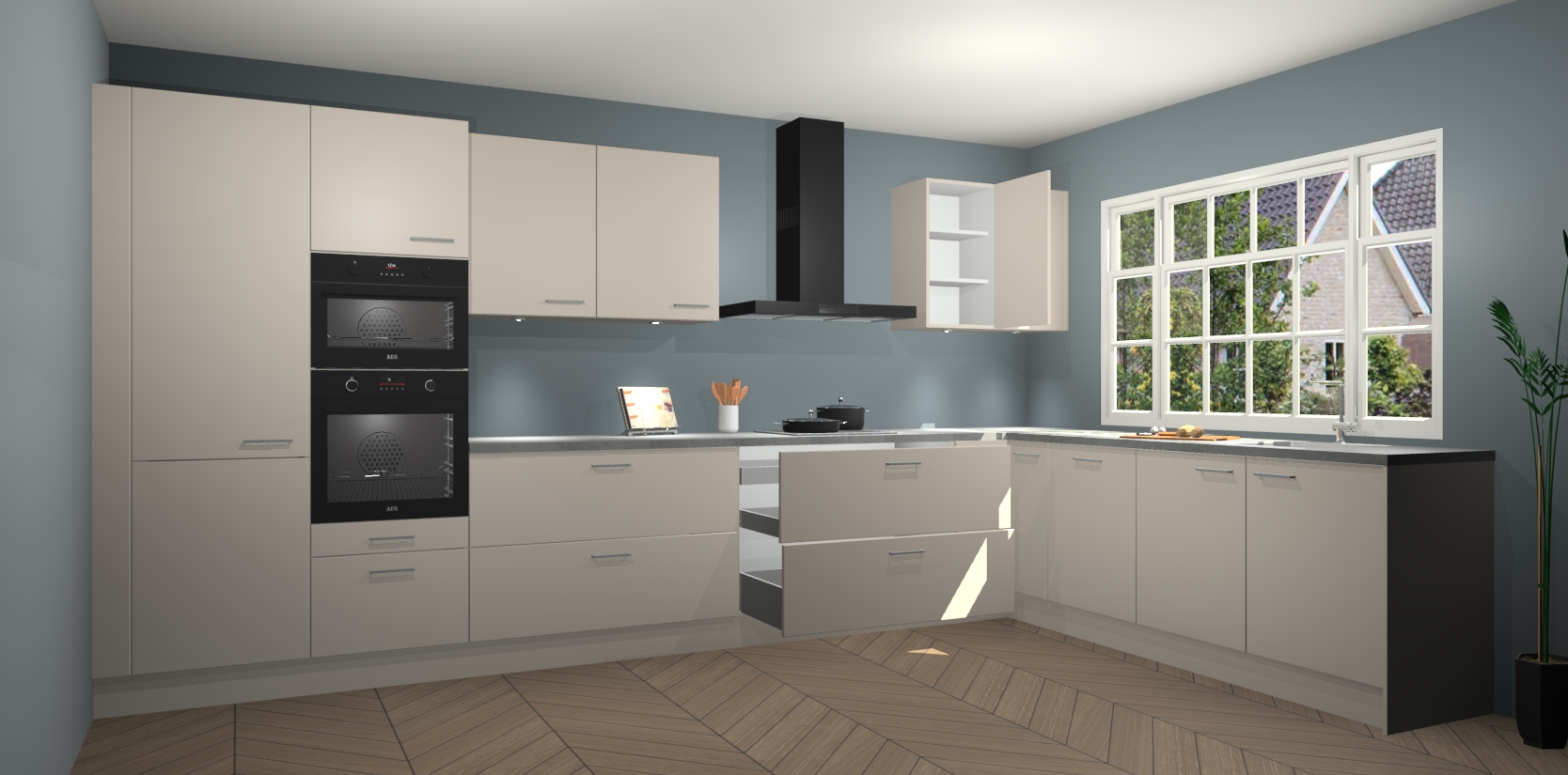 In deze box zijn alle kleuren verzameld van de deuren en werkbladen. Vraag de gratis kleurenbox aan en kijk thuis rustig verder!