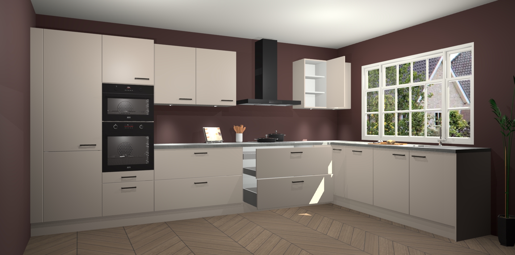 Kom dichtbij de perfecte keuken van uw dromen met de kasjmier keuken Graz. Met een prachtige houtlook en eigentijds ontwerp, straalt deze keuken warmte en sfeer uit. Of u nu liefhebber bent van traditionele of moderne stijlen, er is genoeg ruimte om aan al uw behoeften te voldoen.