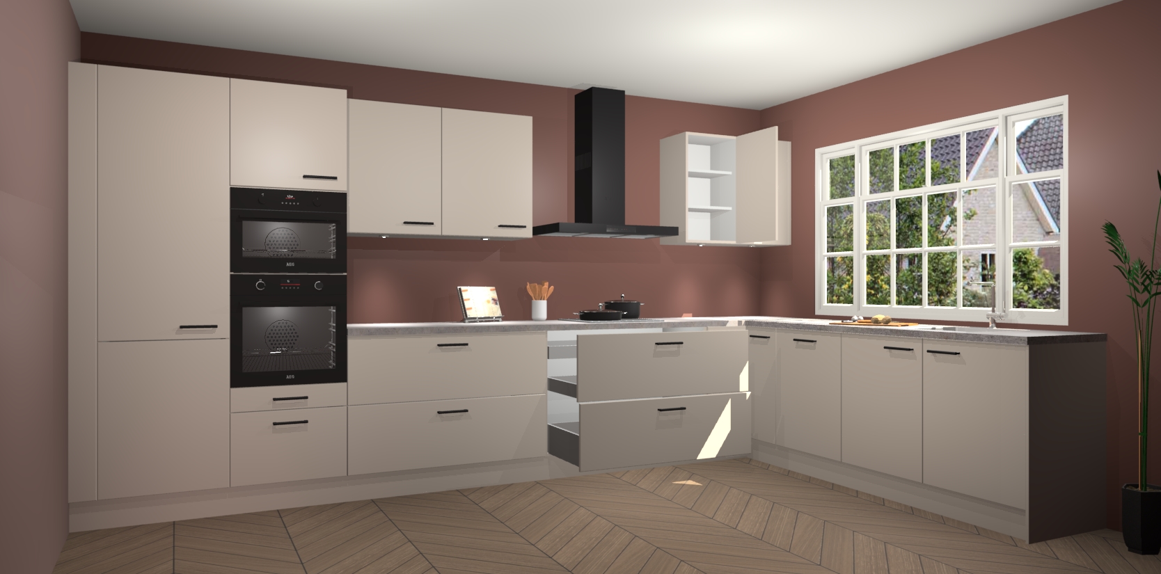 Kom dichtbij de perfecte keuken van uw dromen met de kasjmier keuken Graz. Met een prachtige houtlook en eigentijds ontwerp, straalt deze keuken warmte en sfeer uit. Of u nu liefhebber bent van traditionele of moderne stijlen, er is genoeg ruimte om aan al uw behoeften te voldoen.