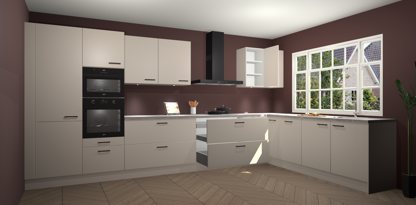 Kom dichtbij de perfecte keuken van uw dromen met de kasjmier keuken Graz. Met een prachtige houtlook en eigentijds ontwerp, straalt deze keuken warmte en sfeer uit. Of u nu liefhebber bent van traditionele of moderne stijlen, er is genoeg ruimte om aan al uw behoeften te voldoen.