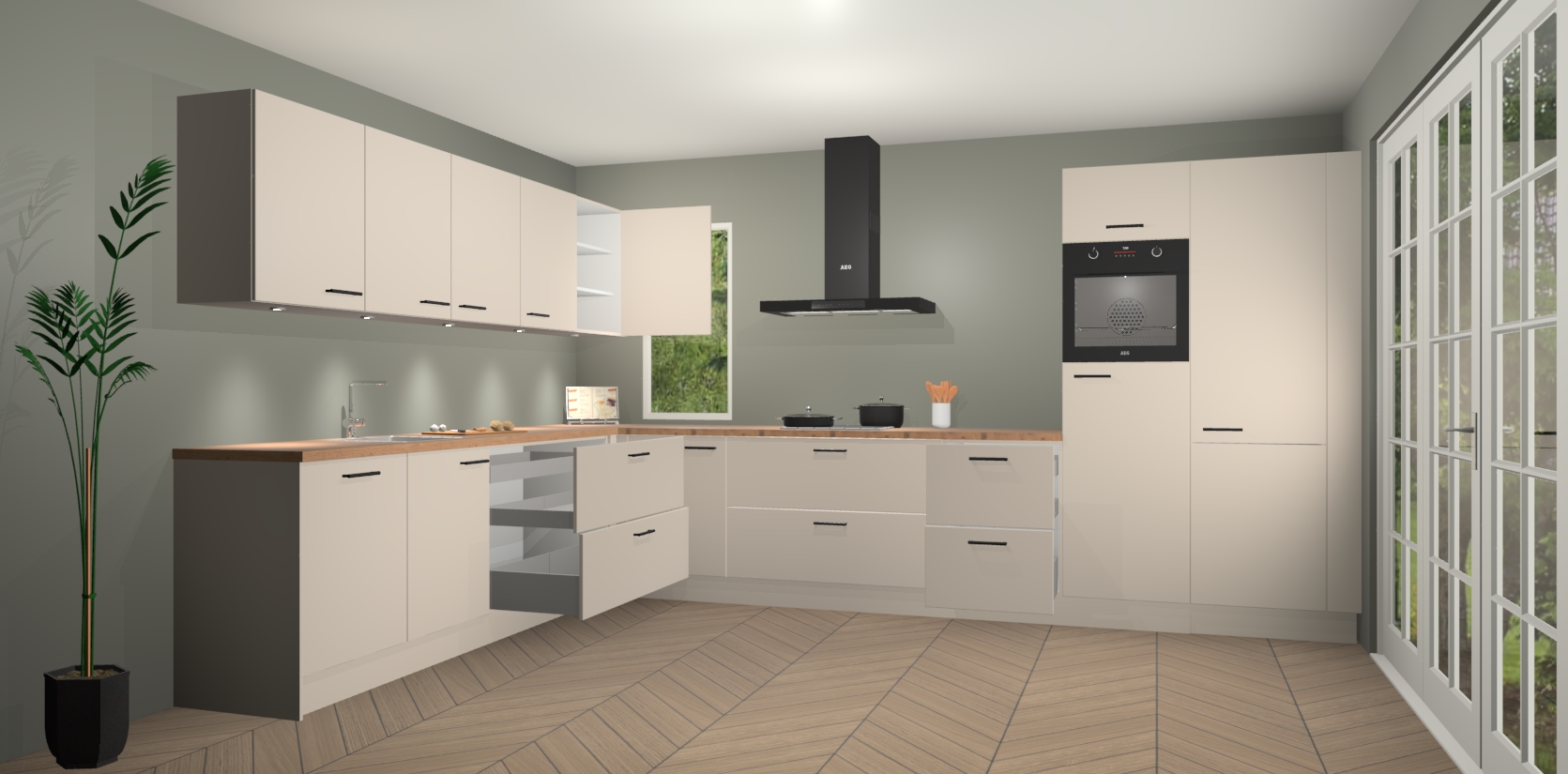 Heeft u nog apparatuur nodig? Geen probleem: de kasjmier keuken Harare bevat vijf ingebouwde apparaten - een oven, inductiekookplaat, afzuigkap, vaatwasser en koelkast - die gemakkelijk kunnen worden bijgewerkt naar AEG na bestelling. En als dat nog niet genoeg is; onze kasten worden pre-geassembleerd geleverd en zijn verkrijgbaar tegen een vastgeroeste lage prijs! U hoeft nooit meer te zoeken naar goede kwaliteit en service want onze producten hebben echt Duitse kwaliteit.