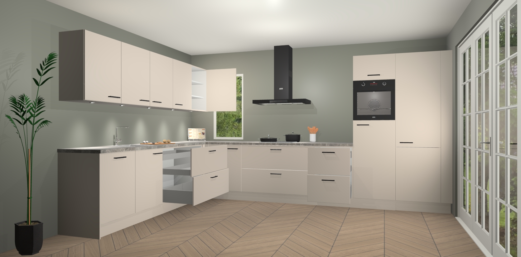 Heeft u nog apparatuur nodig? Geen probleem: de kasjmier keuken Harare bevat vijf ingebouwde apparaten - een oven, inductiekookplaat, afzuigkap, vaatwasser en koelkast - die gemakkelijk kunnen worden bijgewerkt naar AEG na bestelling. En als dat nog niet genoeg is; onze kasten worden pre-geassembleerd geleverd en zijn verkrijgbaar tegen een vastgeroeste lage prijs! U hoeft nooit meer te zoeken naar goede kwaliteit en service want onze producten hebben echt Duitse kwaliteit.