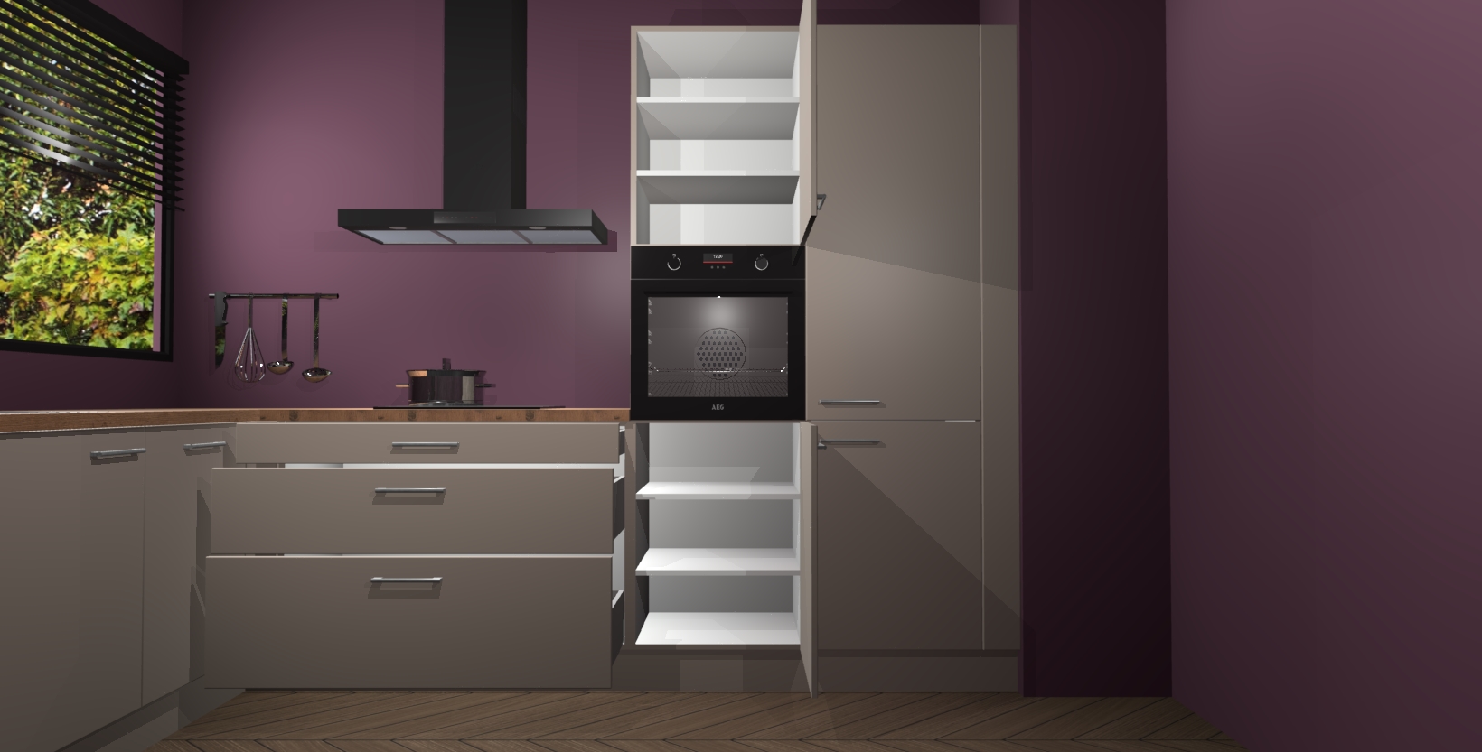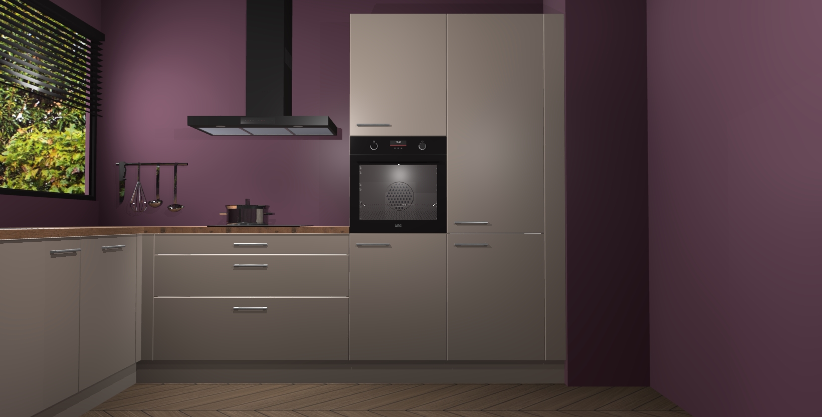 Met een modern, tijdloos design en ruime opslagruimte, zult u zich in no-time thuis voelen in uw nieuwe keuken. Uw leven wordt eenvoudiger met de soft-close deuren die voor het ultieme stille comfort zorgen - geen geluid dat u stoort terwijl u kookt. Ook is de keuken voorzien van 5 ingebouwde apparaten: een oven, inductie kookplaat, afzuigkap, vaatwasser en koelkast. Deze kunnen gemakkelijk na bestelling worden bijgewerkt naar AEG - waardoor uw luxe ervaring compleet is.