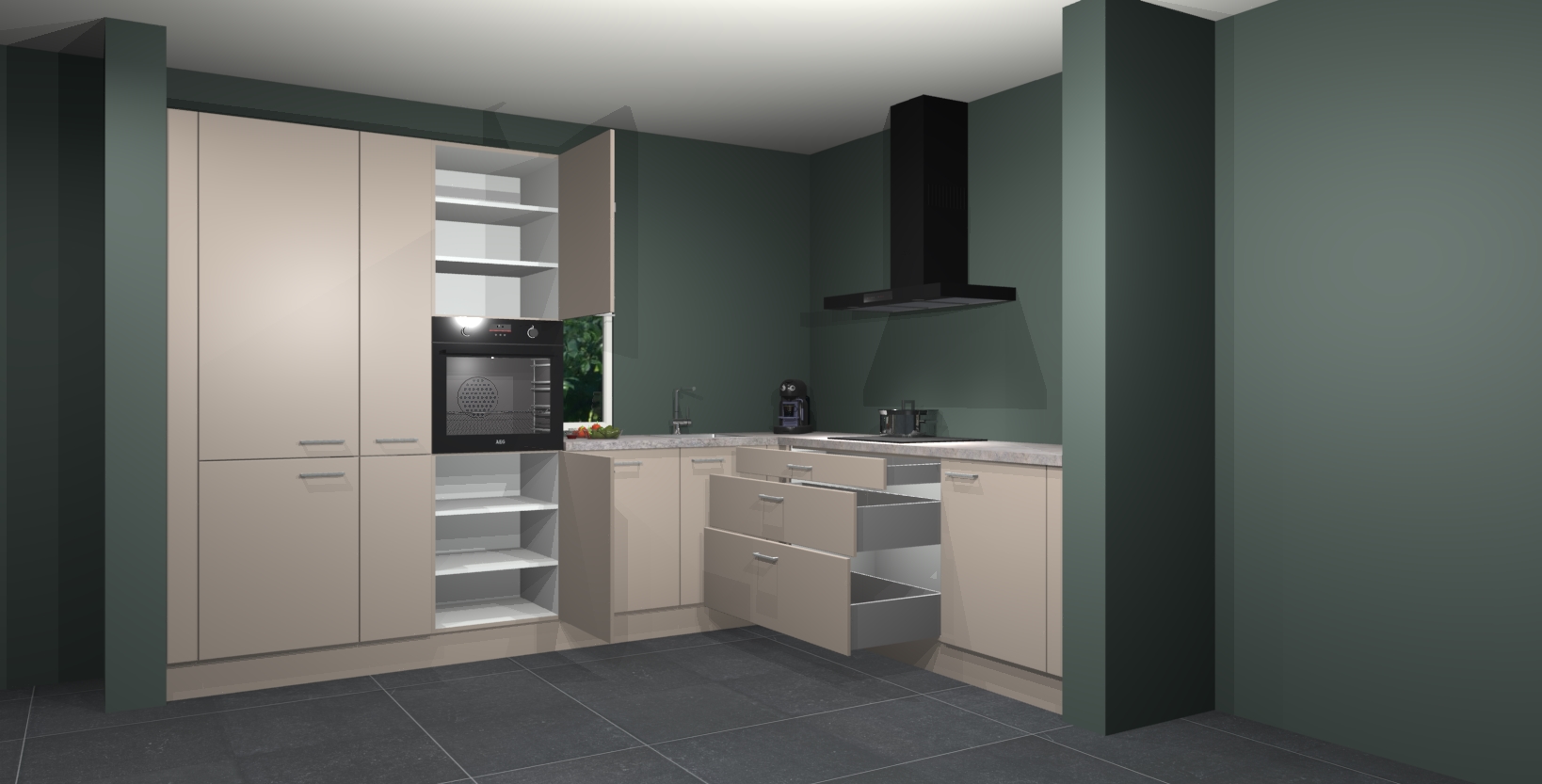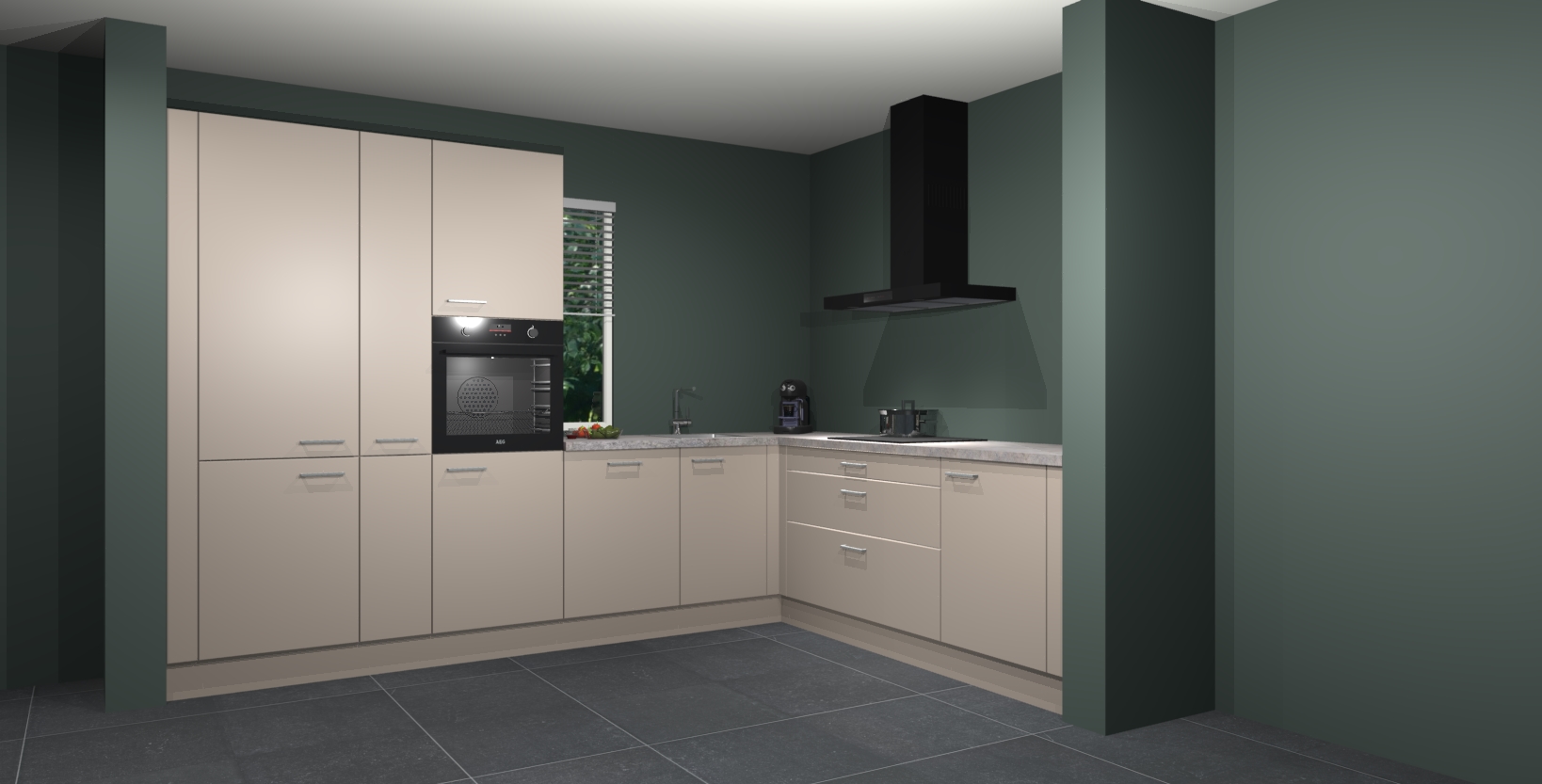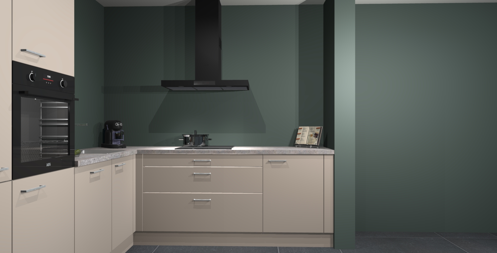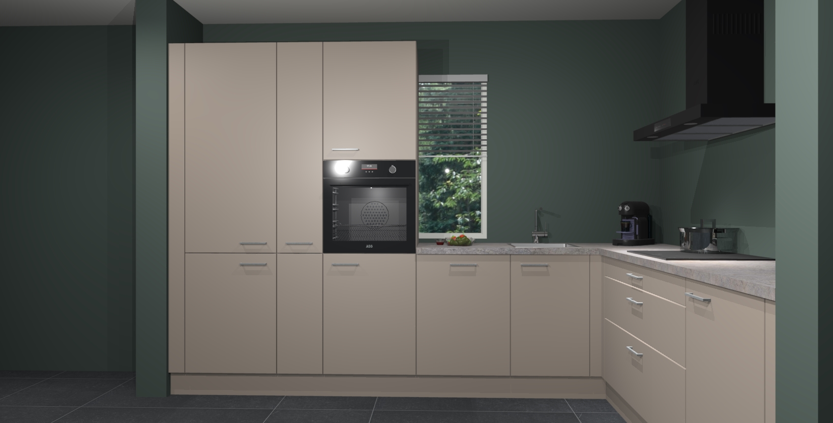Met een modern, tijdloos design en ruime opslagruimte, zult u zich in no-time thuis voelen in uw nieuwe keuken. Uw leven wordt eenvoudiger met de soft-close deuren die voor het ultieme stille comfort zorgen - geen geluid dat u stoort terwijl u kookt. Ook is de keuken voorzien van 5 ingebouwde apparaten: een oven, inductie kookplaat, afzuigkap, vaatwasser en koelkast. Deze kunnen gemakkelijk na bestelling worden bijgewerkt naar AEG - waardoor uw luxe ervaring compleet is.