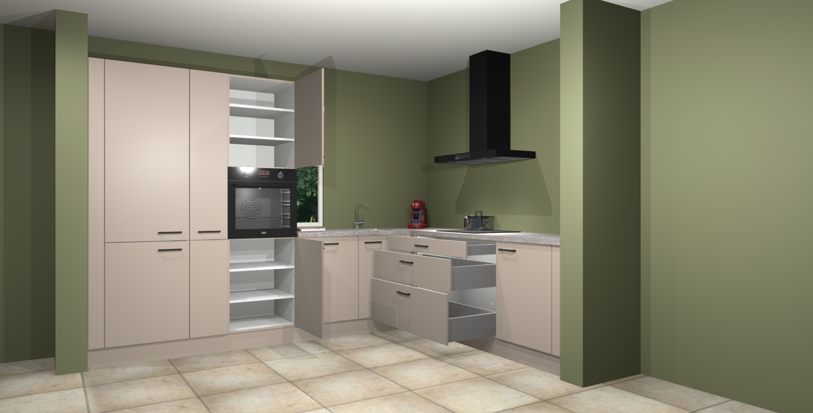 Inclusief plinten, stelpoten en werkblad
