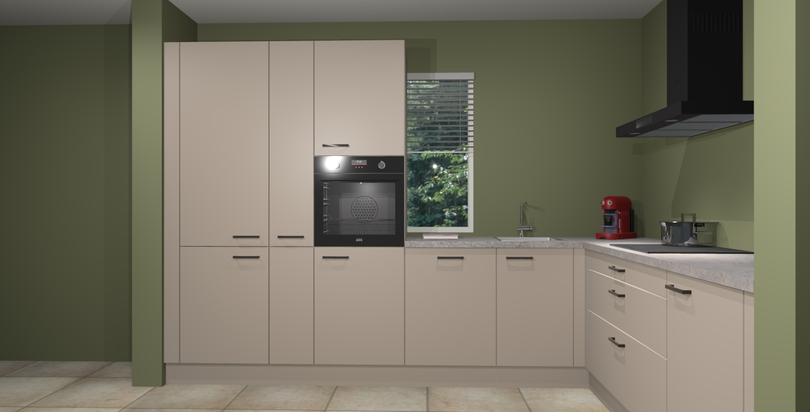 Met een modern, tijdloos design en ruime opslagruimte, zult u zich in no-time thuis voelen in uw nieuwe keuken. Uw leven wordt eenvoudiger met de soft-close deuren die voor het ultieme stille comfort zorgen - geen geluid dat u stoort terwijl u kookt. Ook is de keuken voorzien van 5 ingebouwde apparaten: een oven, inductie kookplaat, afzuigkap, vaatwasser en koelkast. Deze kunnen gemakkelijk na bestelling worden bijgewerkt naar AEG - waardoor uw luxe ervaring compleet is.