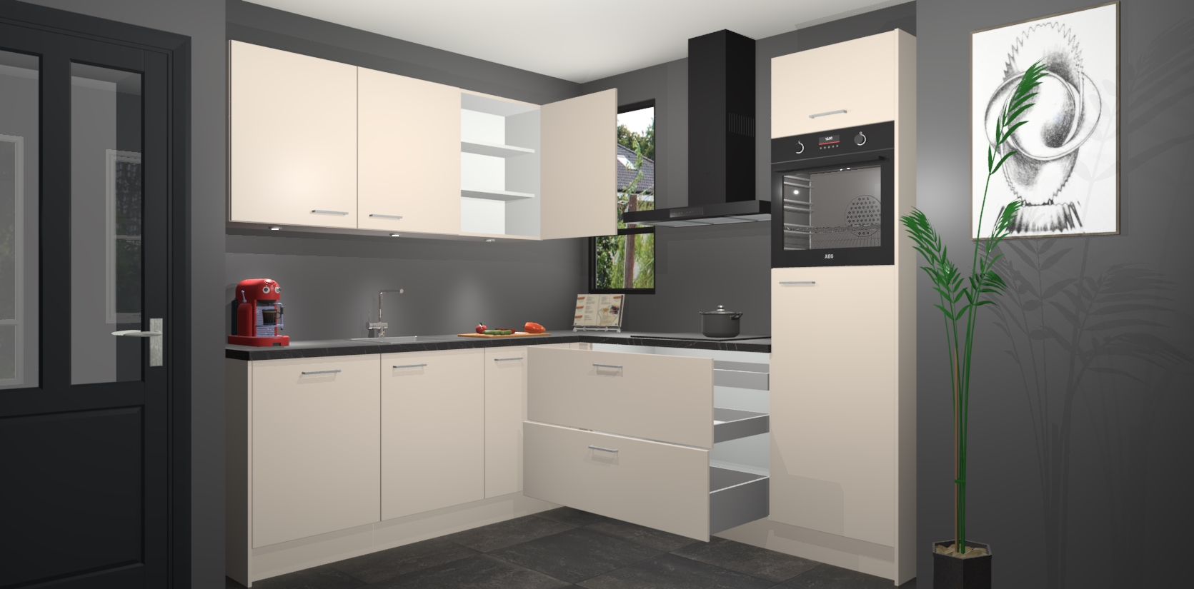 Inclusief plinten, stelpoten en werkblad