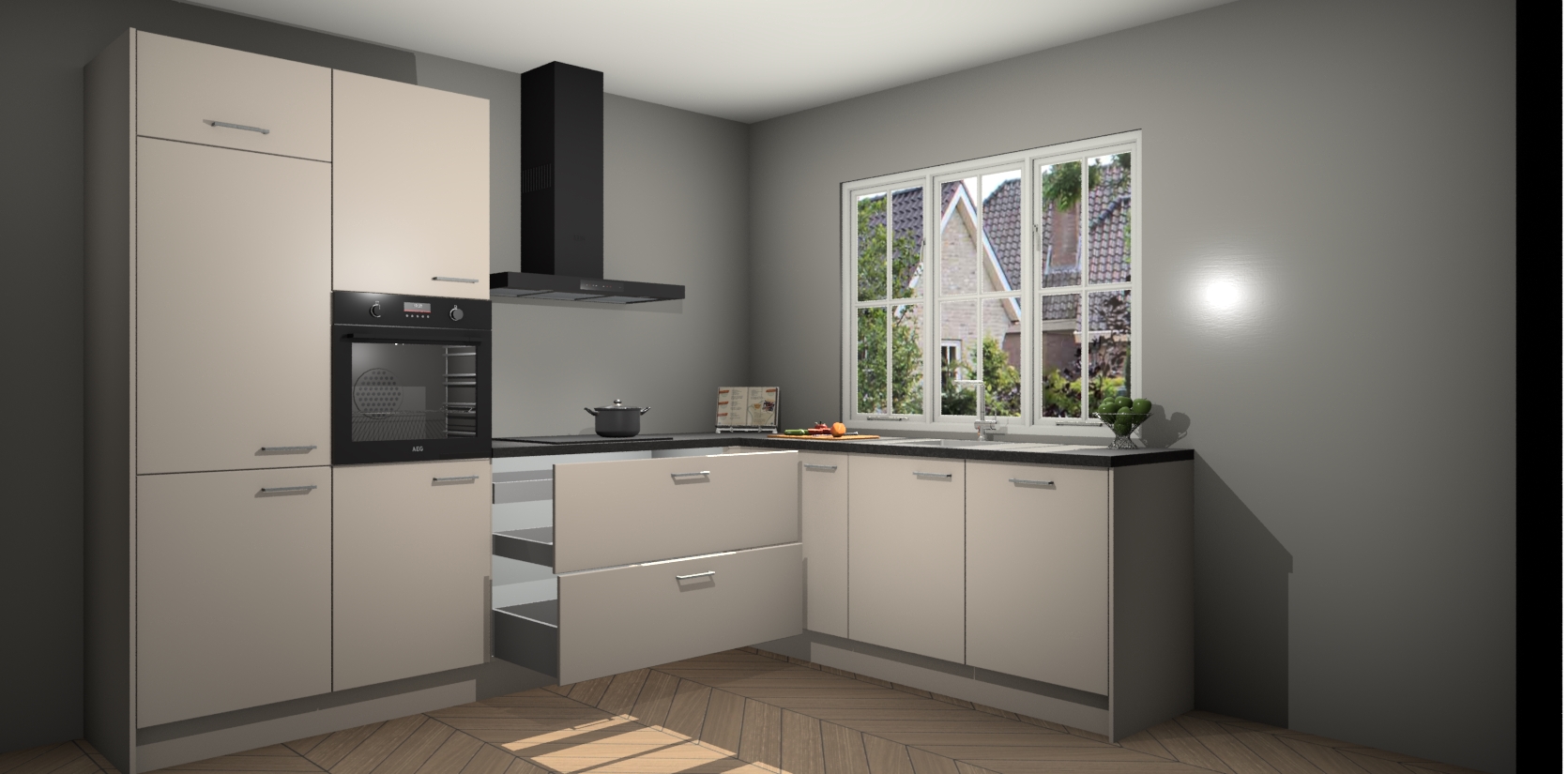 Inclusief plinten, stelpoten en werkblad