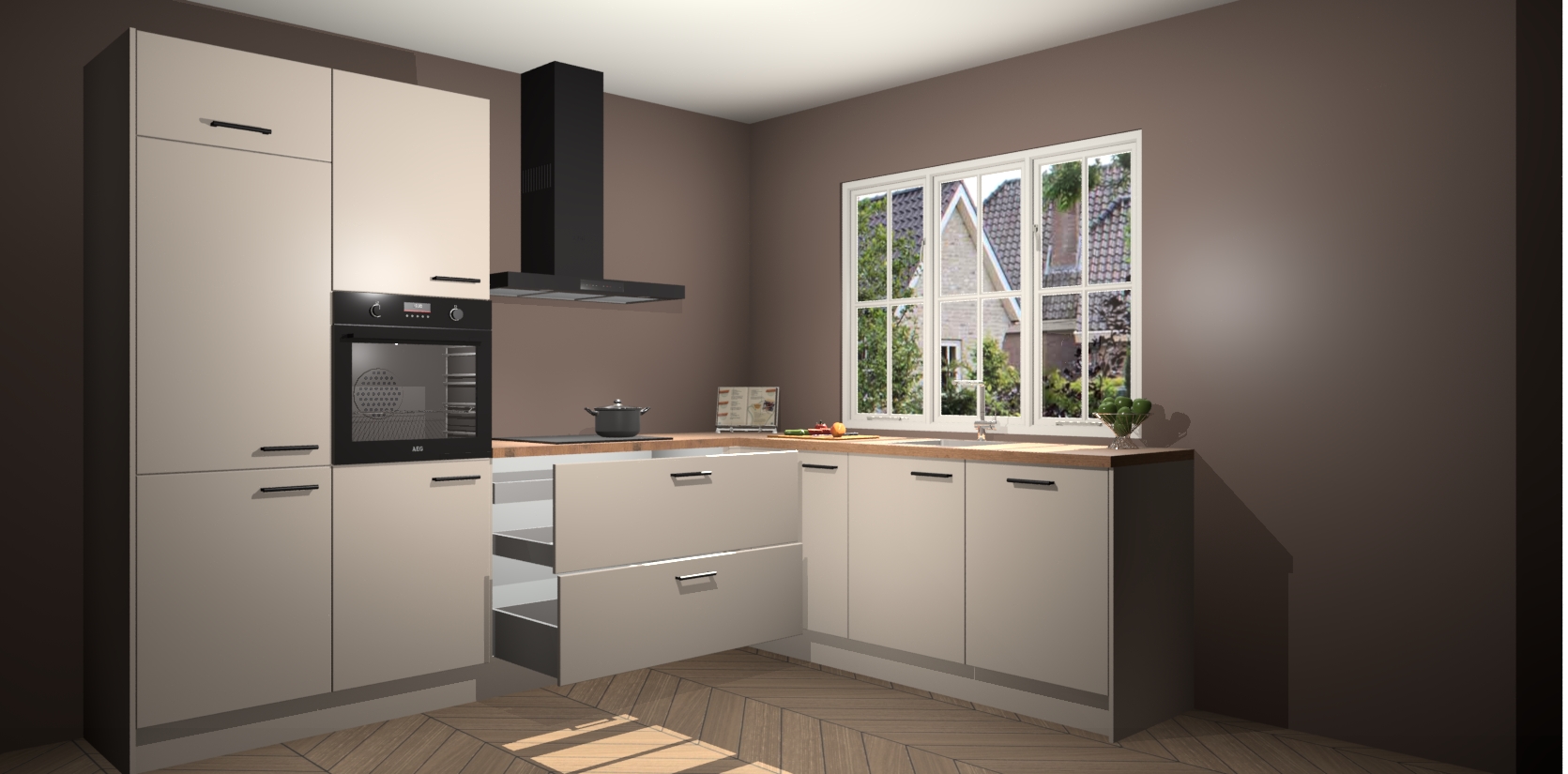 Inclusief plinten, stelpoten en werkblad