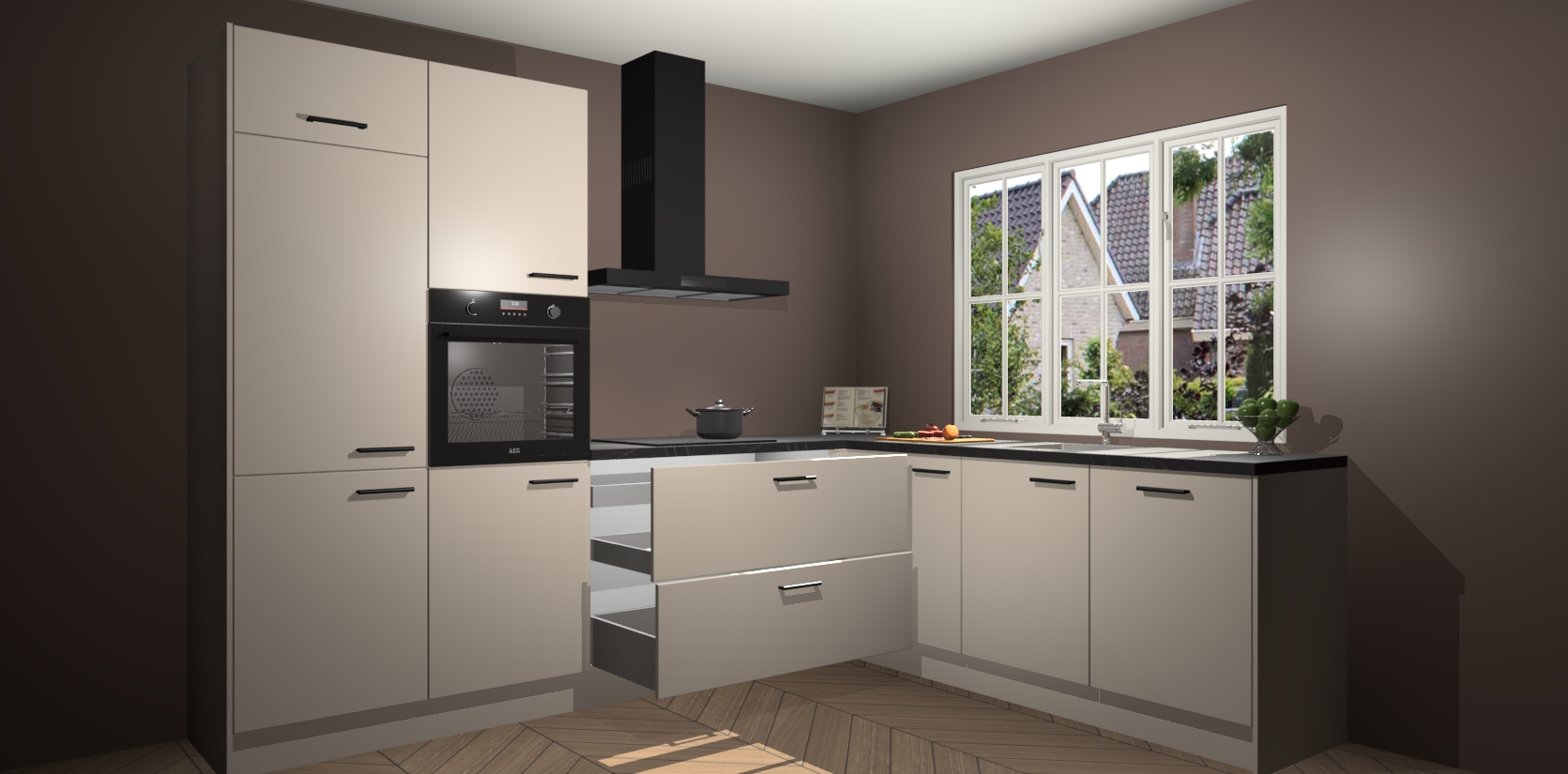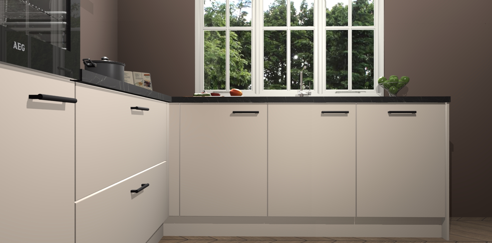 Inclusief plinten, stelpoten en werkblad
