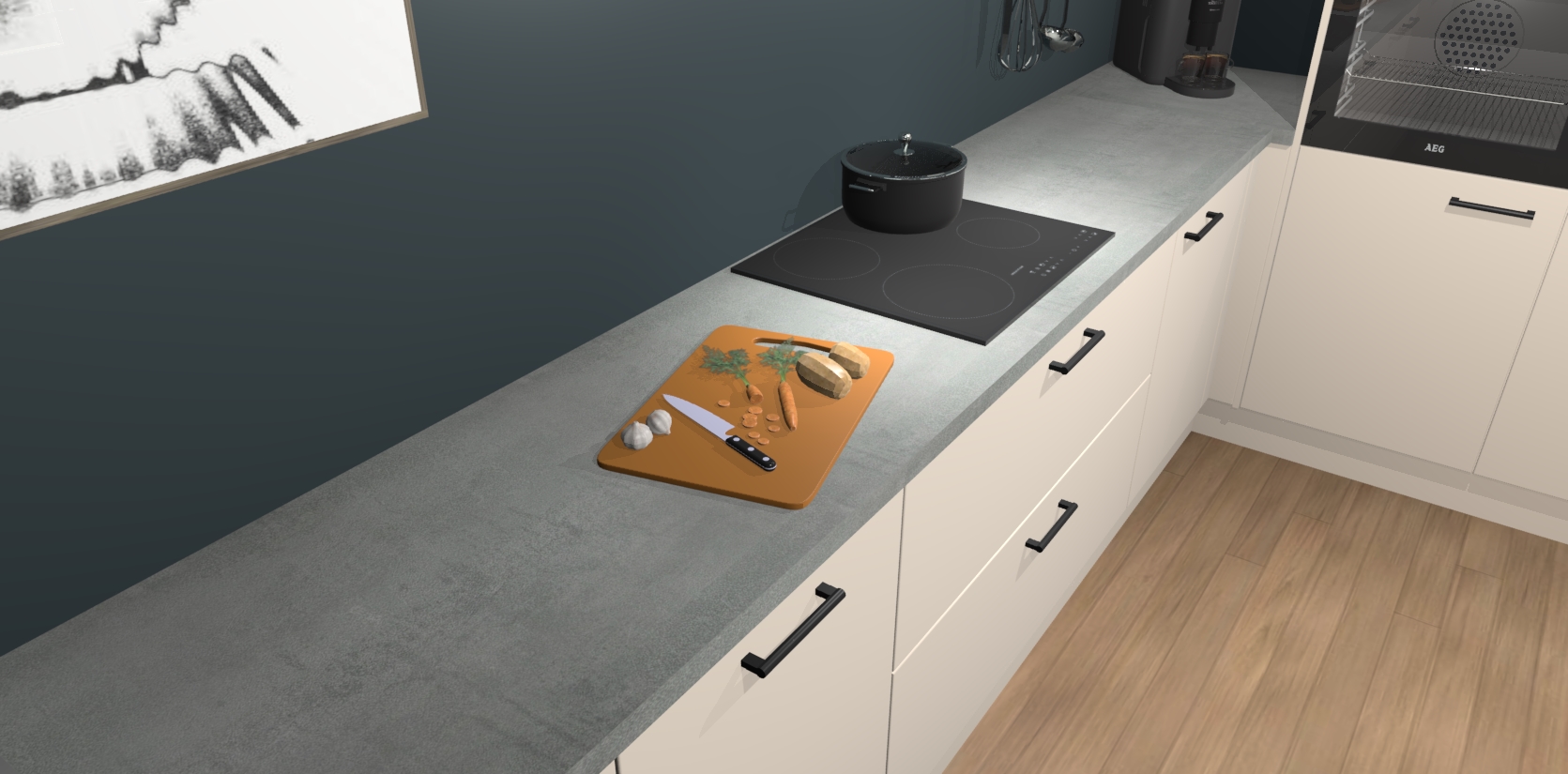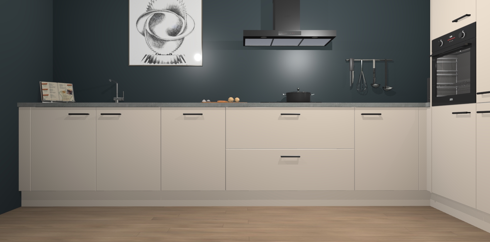Inclusief plinten, stelpoten en werkblad