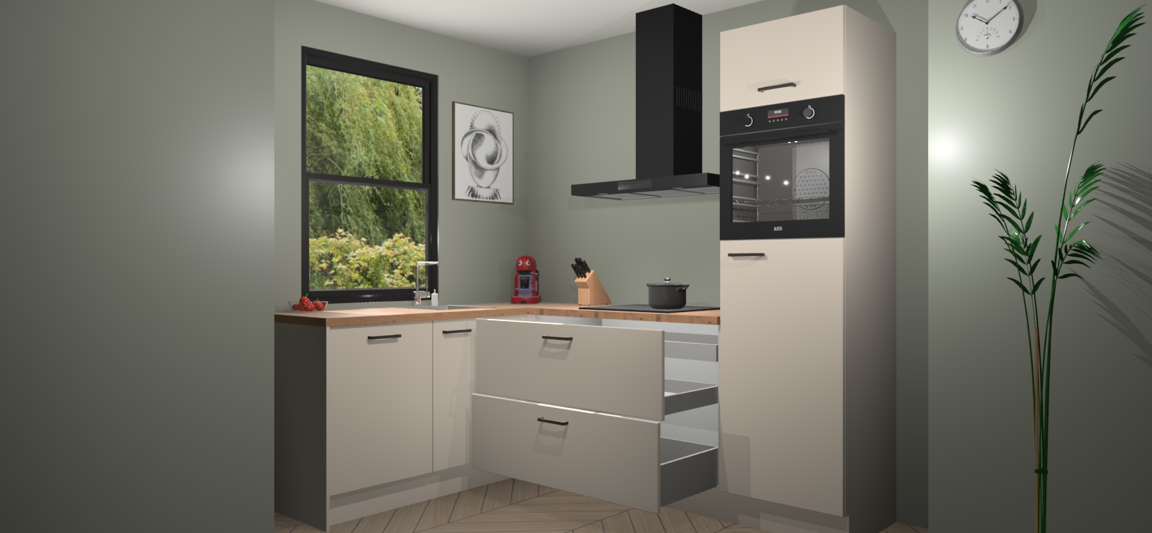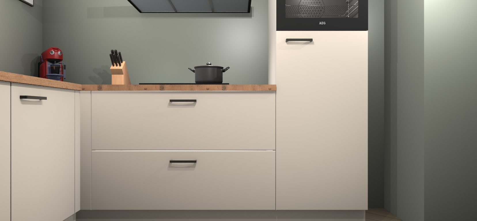 Inclusief plinten, stelpoten en werkblad