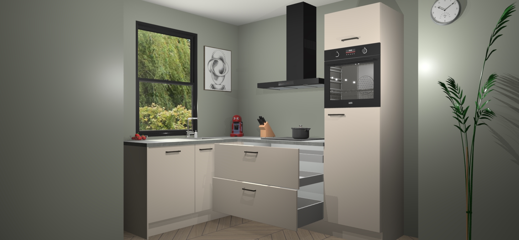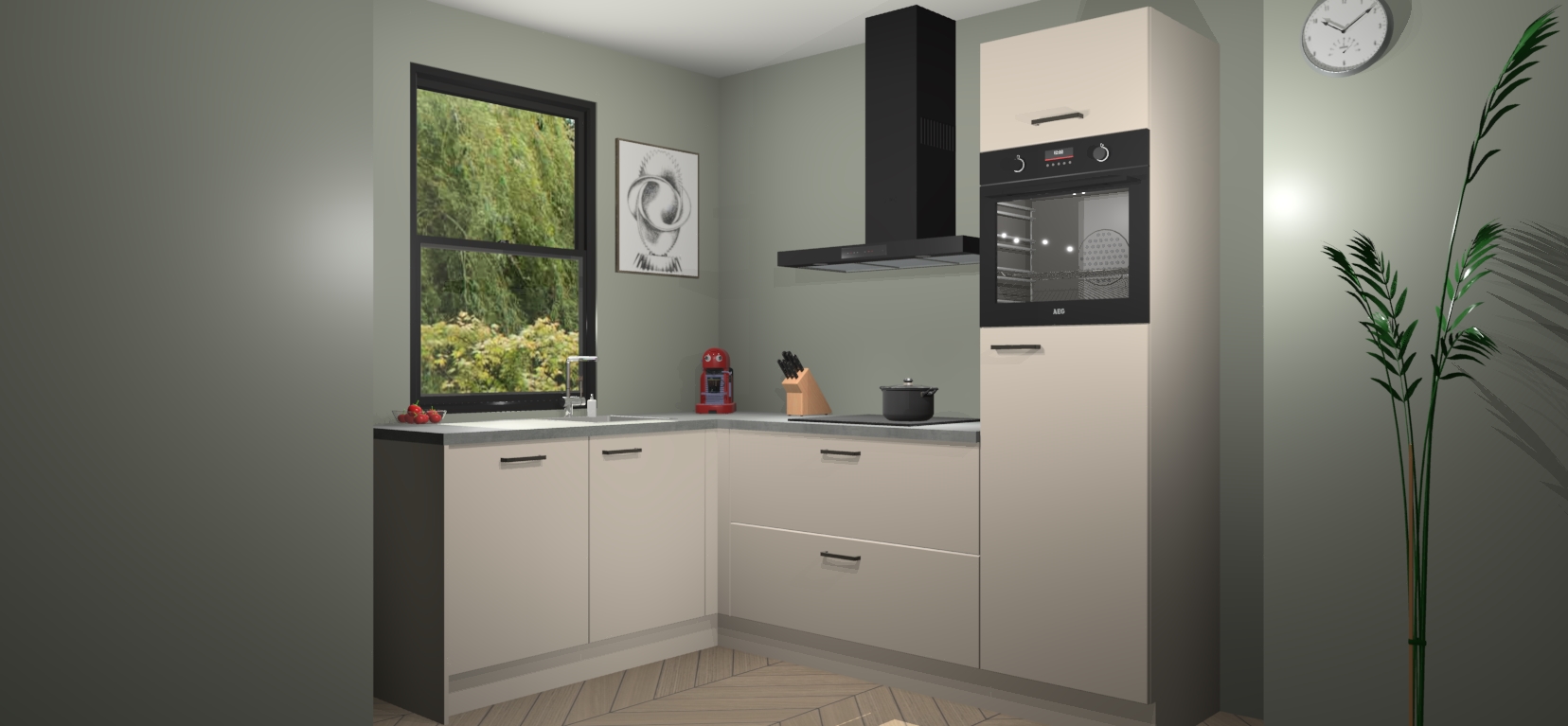 Deze prachtige hoekkeuken heeft alle benodigdheden om uw droomkook- en eetruimte compleet te maken. De Kasjmier kasten bieden een echo van raffinement, terwijl de 5 inbouwapparaten genoeg opties bieden voor het bereiden van heerlijke maaltijden. De oven, inductiekookplaat, afzuigkap, vaatwasser en koelkast zorgen ervoor dat u tijd in de keuken zo efficiënt mogelijk verloopt, terwijl ze ook dat extra vleugje luxe bieden.