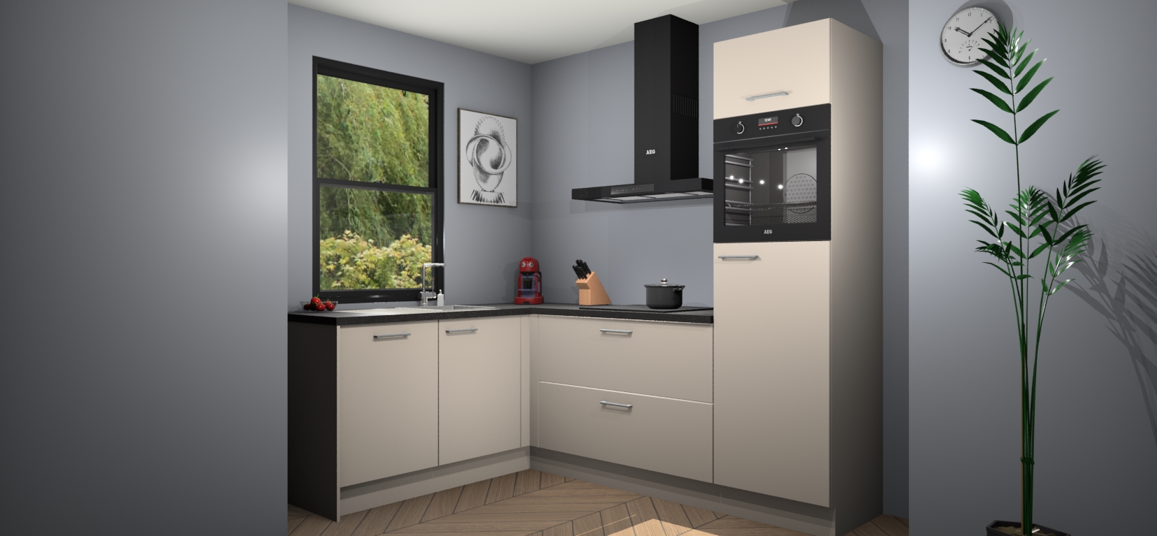 Deze prachtige hoekkeuken heeft alle benodigdheden om uw droomkook- en eetruimte compleet te maken. De Kasjmier kasten bieden een echo van raffinement, terwijl de 5 inbouwapparaten genoeg opties bieden voor het bereiden van heerlijke maaltijden. De oven, inductiekookplaat, afzuigkap, vaatwasser en koelkast zorgen ervoor dat u tijd in de keuken zo efficiënt mogelijk verloopt, terwijl ze ook dat extra vleugje luxe bieden.