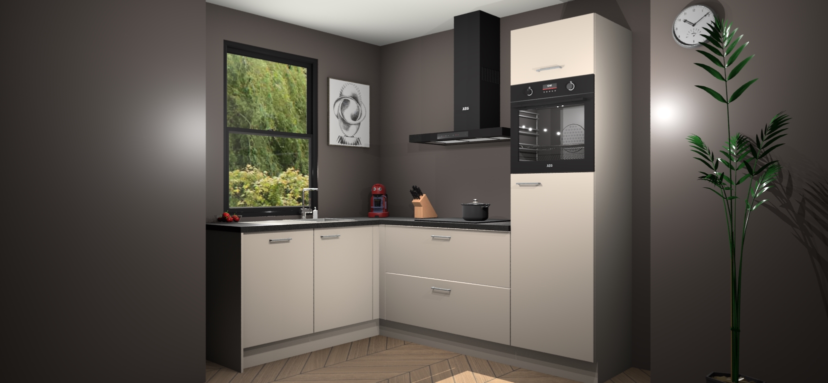 Deze prachtige hoekkeuken heeft alle benodigdheden om uw droomkook- en eetruimte compleet te maken. De Kasjmier kasten bieden een echo van raffinement, terwijl de 5 inbouwapparaten genoeg opties bieden voor het bereiden van heerlijke maaltijden. De oven, inductiekookplaat, afzuigkap, vaatwasser en koelkast zorgen ervoor dat u tijd in de keuken zo efficiënt mogelijk verloopt, terwijl ze ook dat extra vleugje luxe bieden.