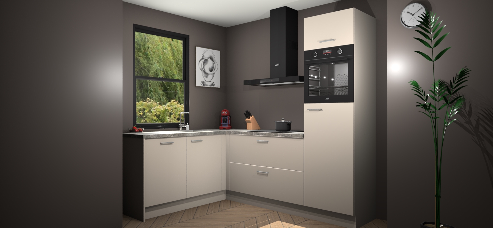 Deze prachtige hoekkeuken heeft alle benodigdheden om uw droomkook- en eetruimte compleet te maken. De Kasjmier kasten bieden een echo van raffinement, terwijl de 5 inbouwapparaten genoeg opties bieden voor het bereiden van heerlijke maaltijden. De oven, inductiekookplaat, afzuigkap, vaatwasser en koelkast zorgen ervoor dat u tijd in de keuken zo efficiënt mogelijk verloopt, terwijl ze ook dat extra vleugje luxe bieden.