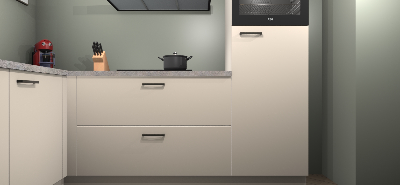In deze box zijn alle kleuren verzameld van de deuren en werkbladen. Vraag de gratis kleurenbox aan en kijk thuis rustig verder!