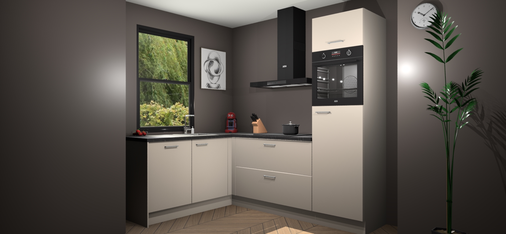 Deze prachtige hoekkeuken heeft alle benodigdheden om uw droomkook- en eetruimte compleet te maken. De Kasjmier kasten bieden een echo van raffinement, terwijl de 5 inbouwapparaten genoeg opties bieden voor het bereiden van heerlijke maaltijden. De oven, inductiekookplaat, afzuigkap, vaatwasser en koelkast zorgen ervoor dat u tijd in de keuken zo efficiënt mogelijk verloopt, terwijl ze ook dat extra vleugje luxe bieden.