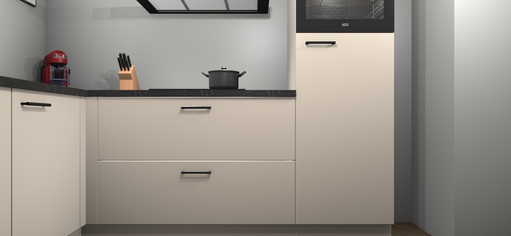 In deze box zijn alle kleuren verzameld van de deuren en werkbladen. Vraag de gratis kleurenbox aan en kijk thuis rustig verder!