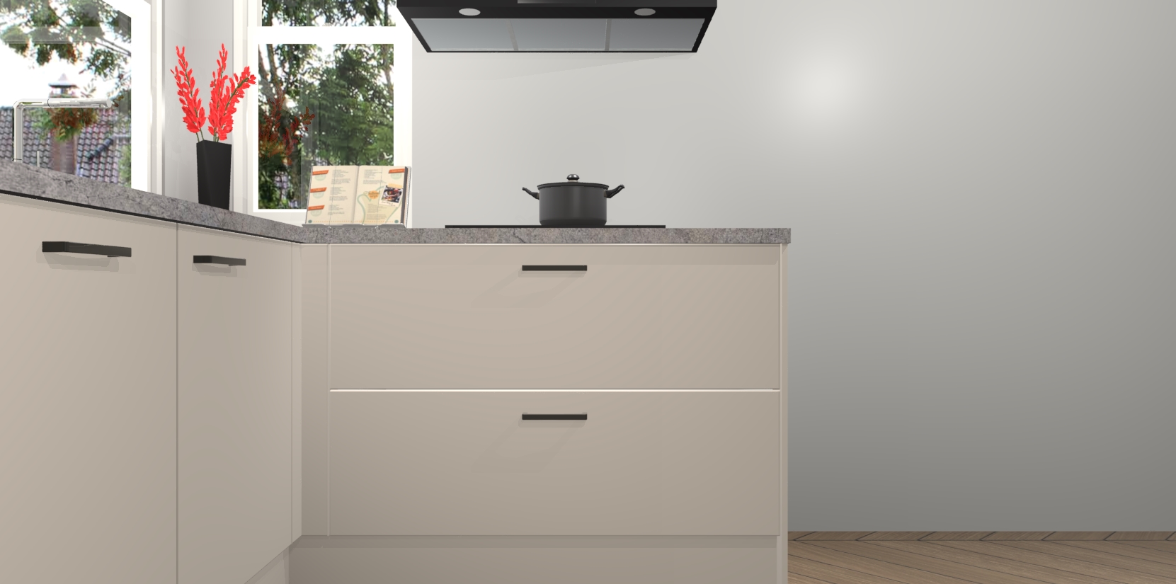 In deze box zijn alle kleuren verzameld van de deuren en werkbladen. Vraag de gratis kleurenbox aan en kijk thuis rustig verder!