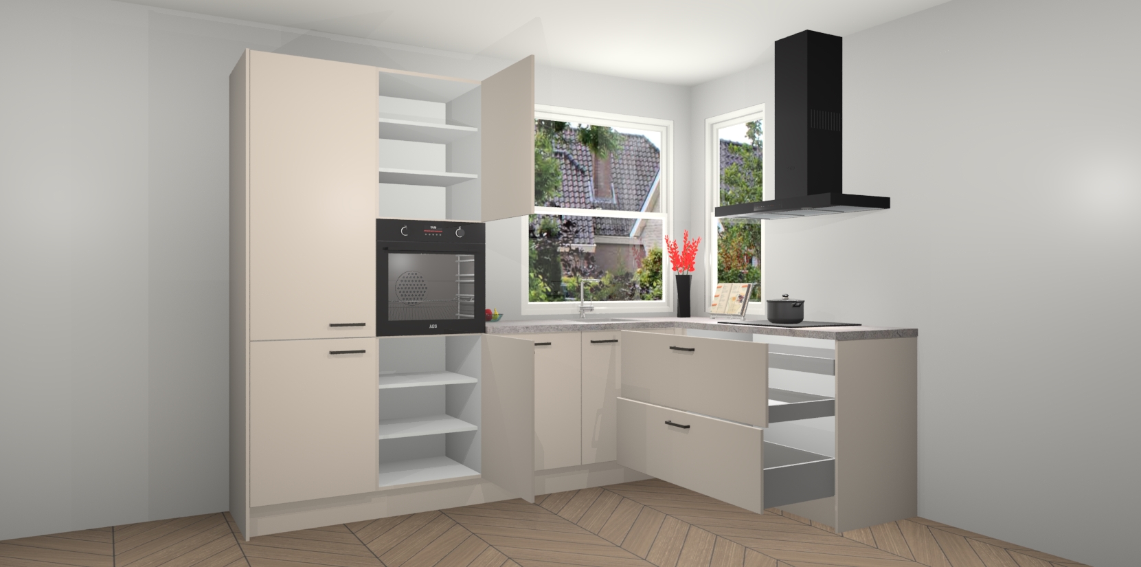 Het is tijd om halsoverkop verliefd te worden op uw droomkeuken, en de Kasjmier keuken Kotor is precies wat u nodig heeft! Met een moderne, tijdloze constructie en een mix van prachtig design zal deze luxe hoekkeuken zeker opvallen. Maar laat de schoonheid u niet afleiden van de indrukwekkende functies - want onder dit alles schuilt een onovertroffen hoeveelheid lekkers!